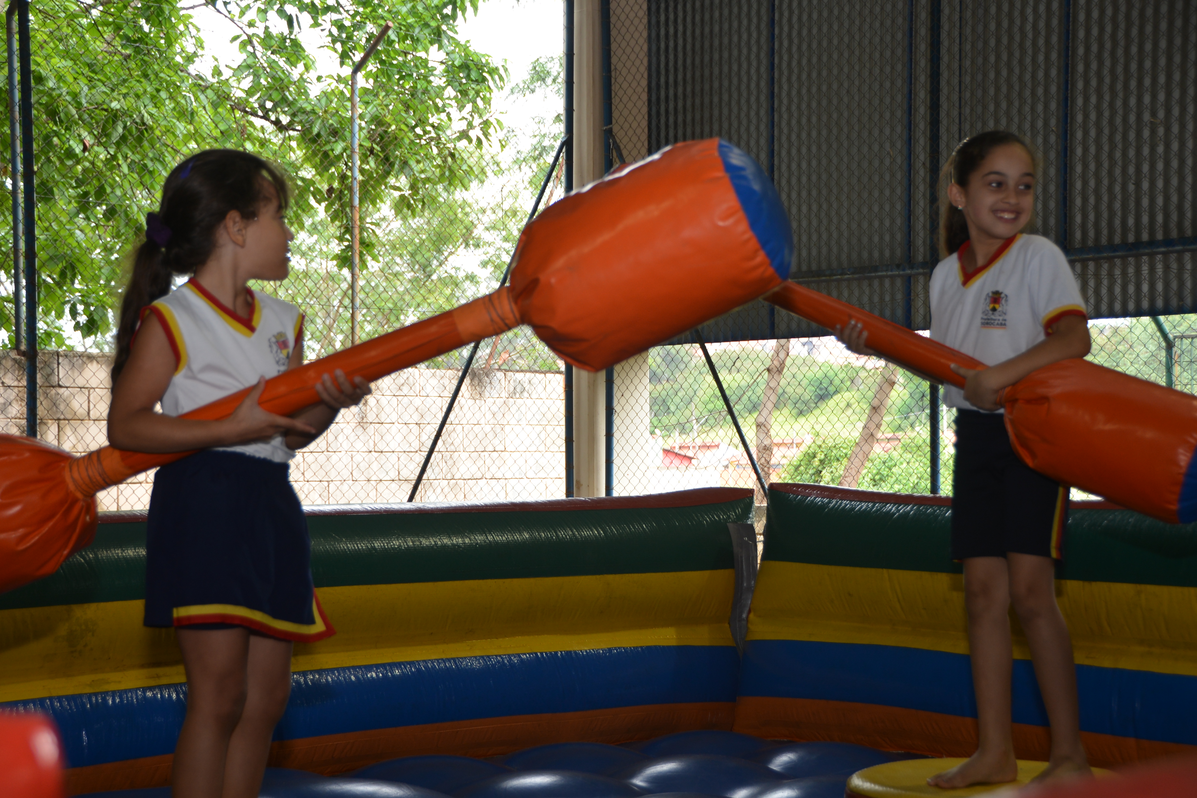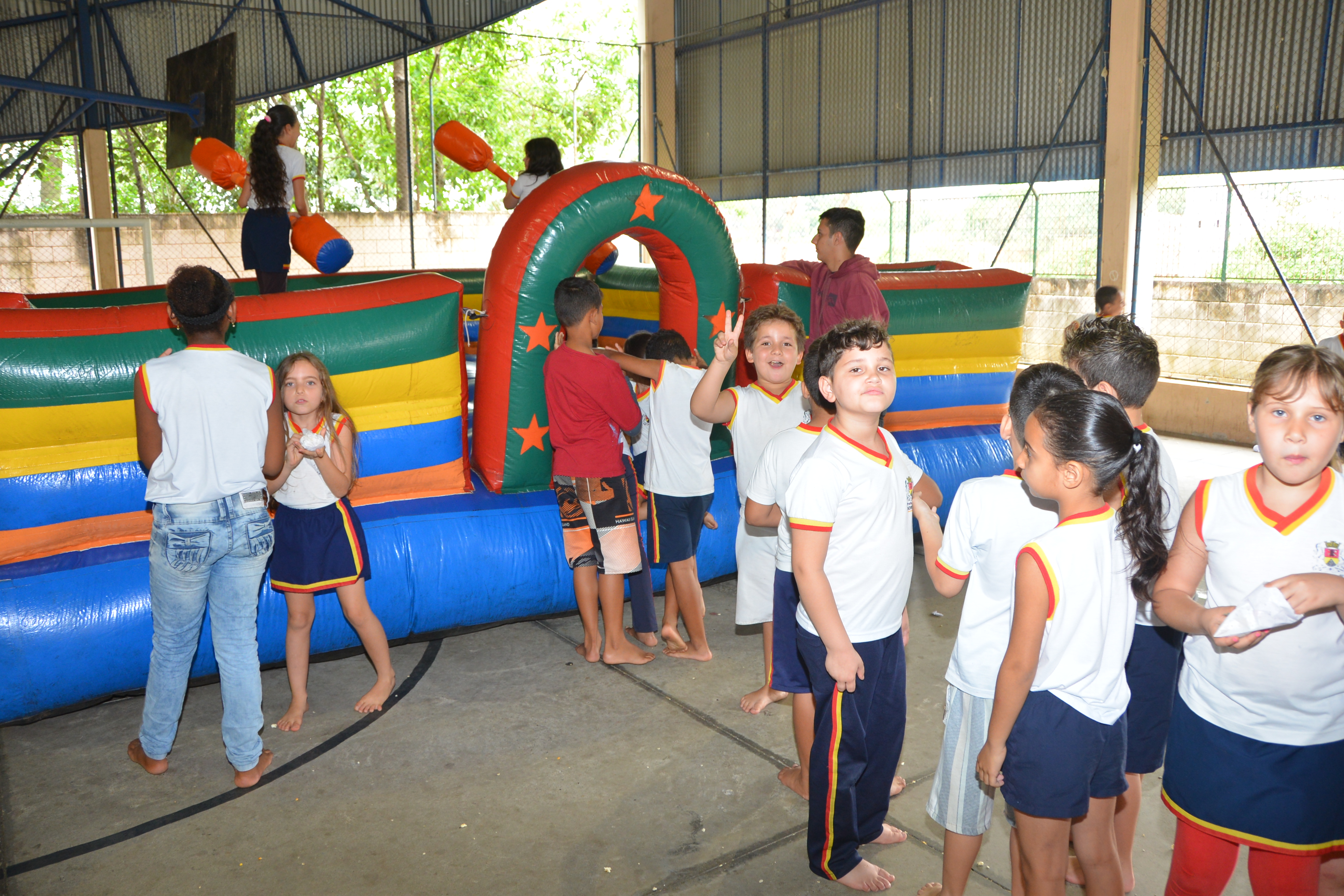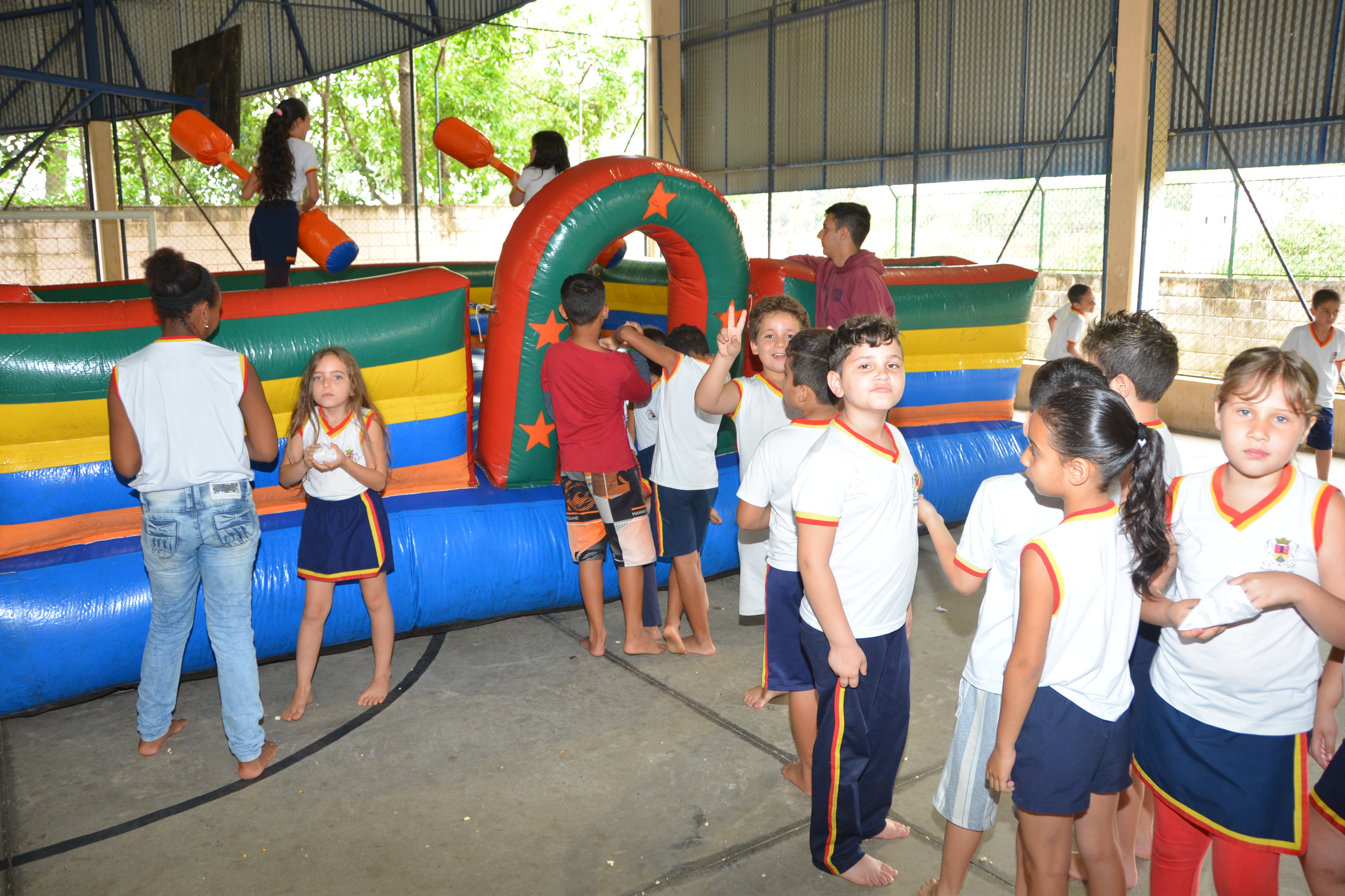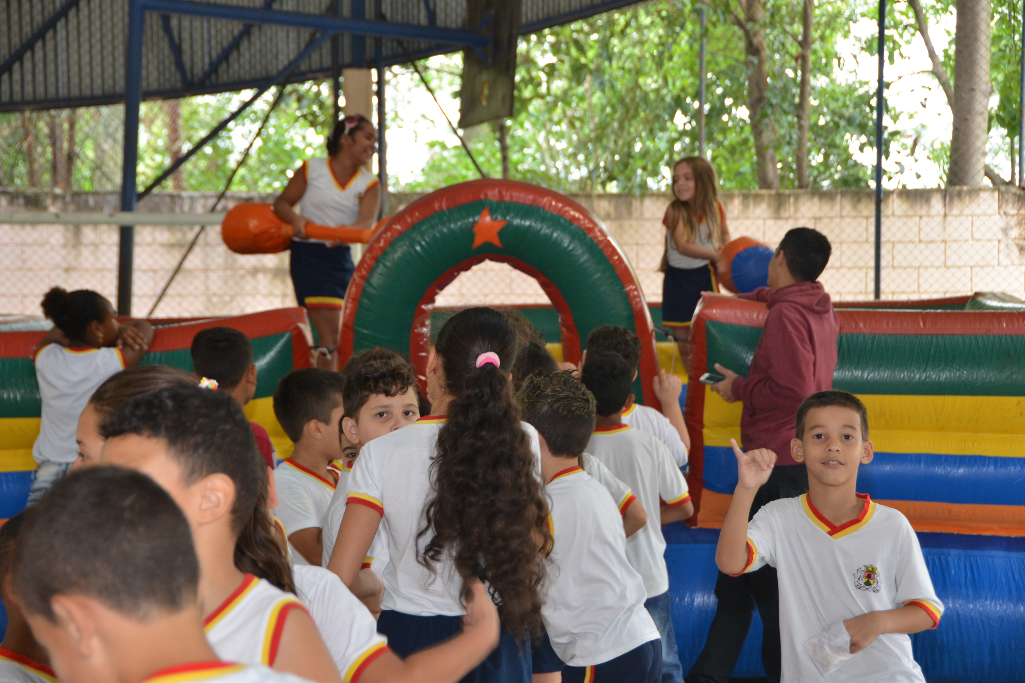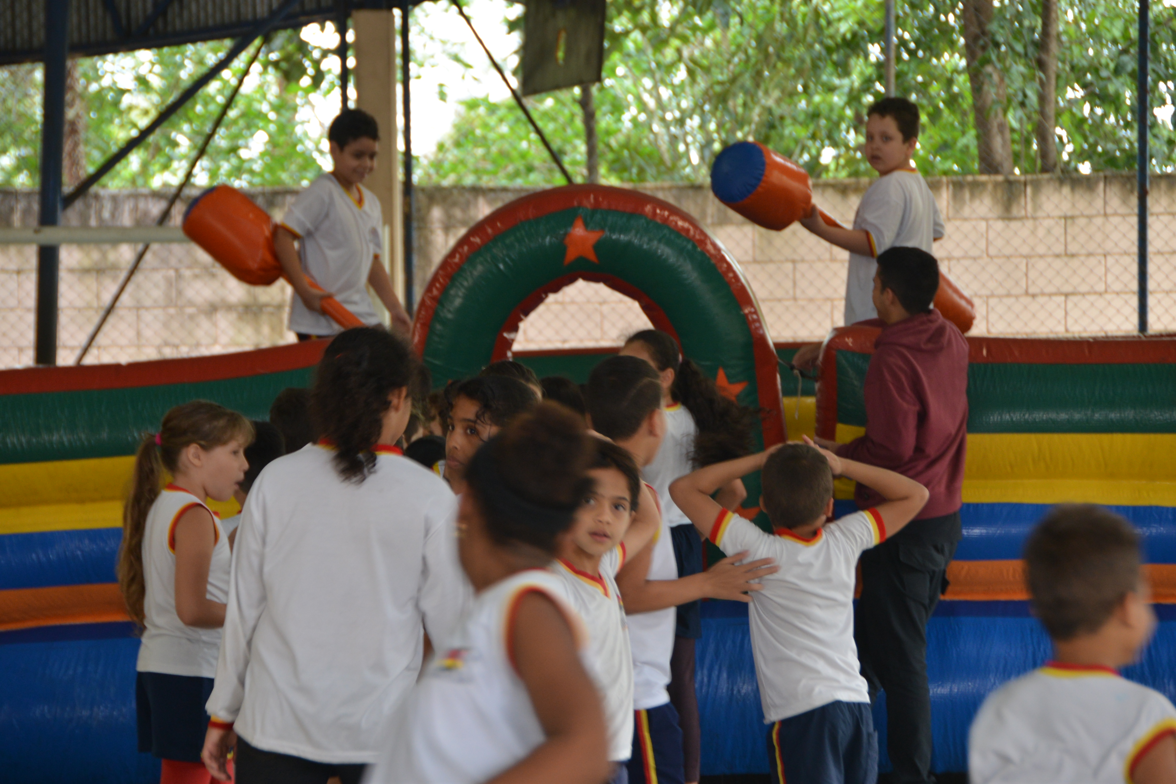 Nesta sexta (14), brinquedos como cama elástica, tobogã e cotonetes gigantes foram espalhados pela quadra da unidade de ensino. Os pequenos foram divididos em duas turmas – das 13h às 14h30, e das 14h50 às 17h – para que aproveitassem democraticamente as opções.
