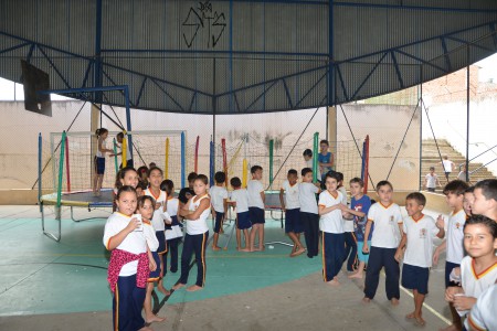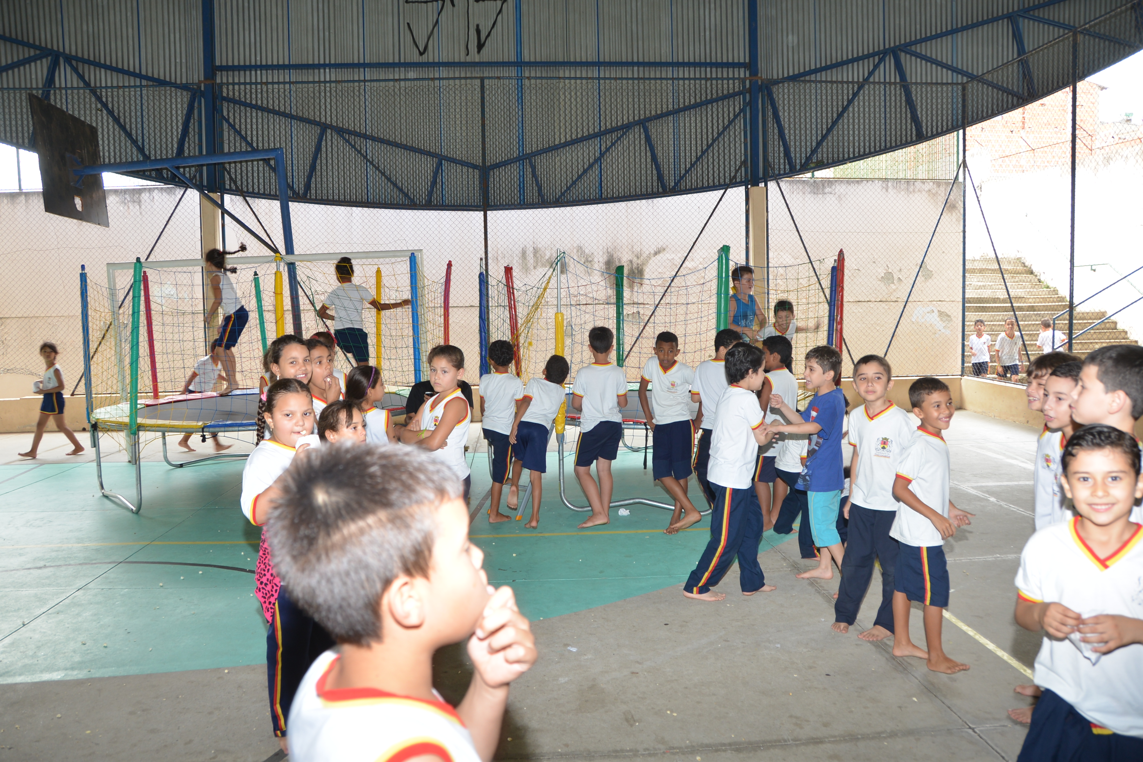 “Estou gostando mais da cama elástica. Mas logo a gente vai voltar para a sala estudar”, disse o garoto Samuel de Oliveira, de 8 anos, que estava na primeira turma. “Ontem a gente cantou e deu presente para os professores”, orgulhou-se o amigo de Samuel, Tiago Rodrigo, da mesma idade.
