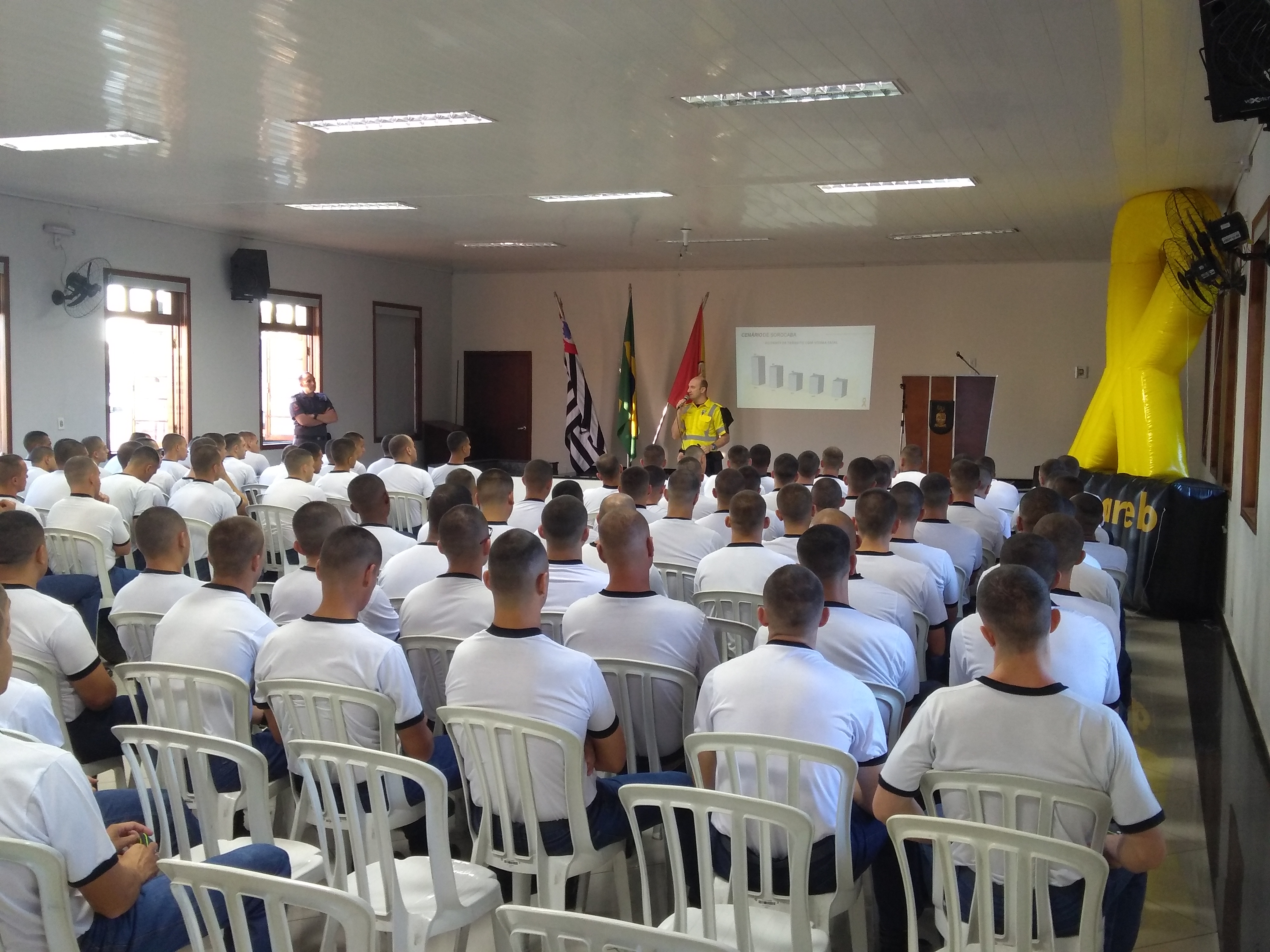 Na manhã desta quinta-feira (17), a Urbes – Trânsito e Transportes levou a palestra sobre Segurança no Trânsito a 150 novos integrantes do 7º Batalhão de Polícia Militar do Interior (BPMI) na sede do CPI-7 (Comando de Policiamento do Interior). O foco da ação educativa foi falar da importância da condução de motocicleta de forma defensiva a fim de evitar acidentes de trânsito.