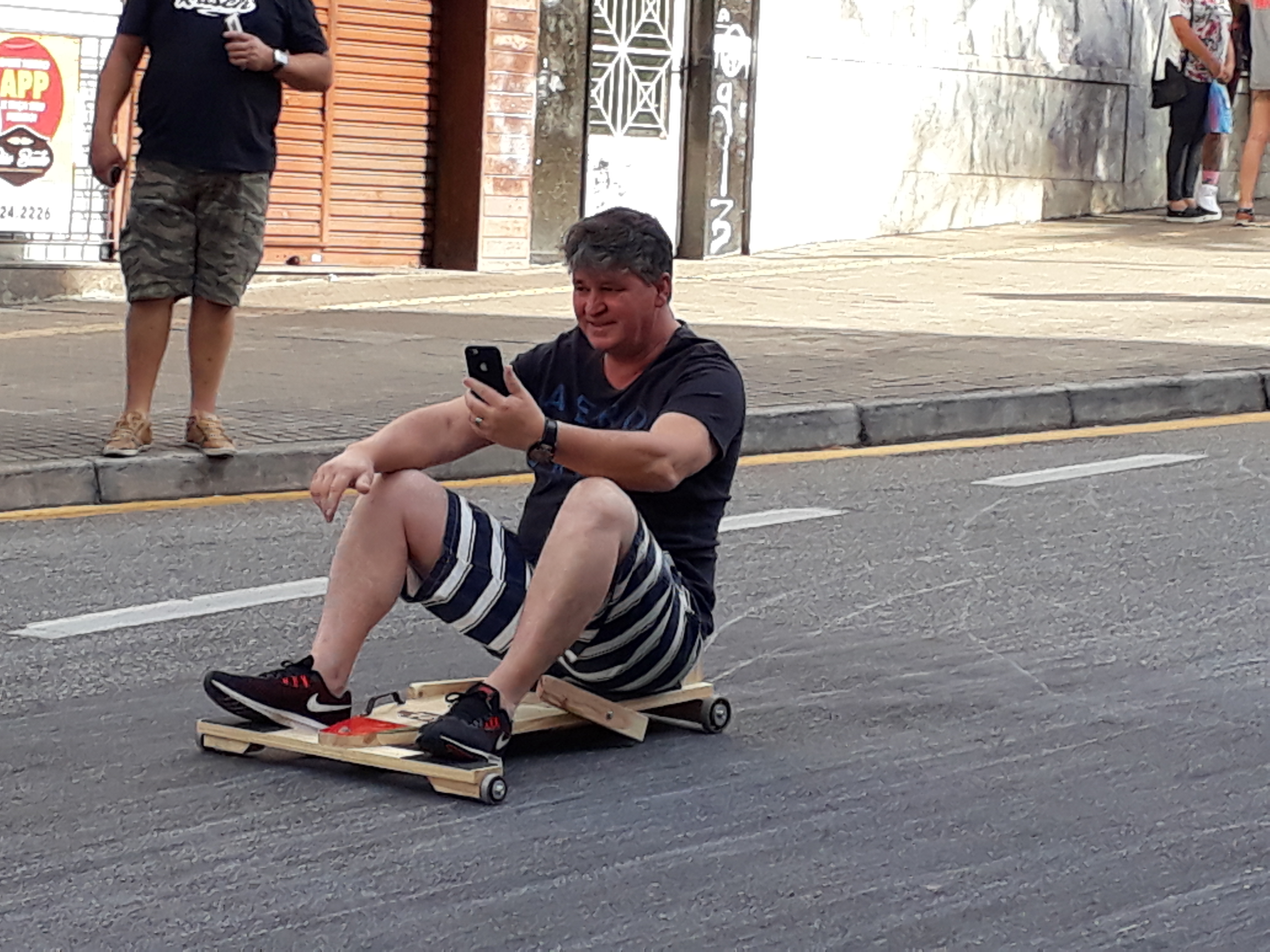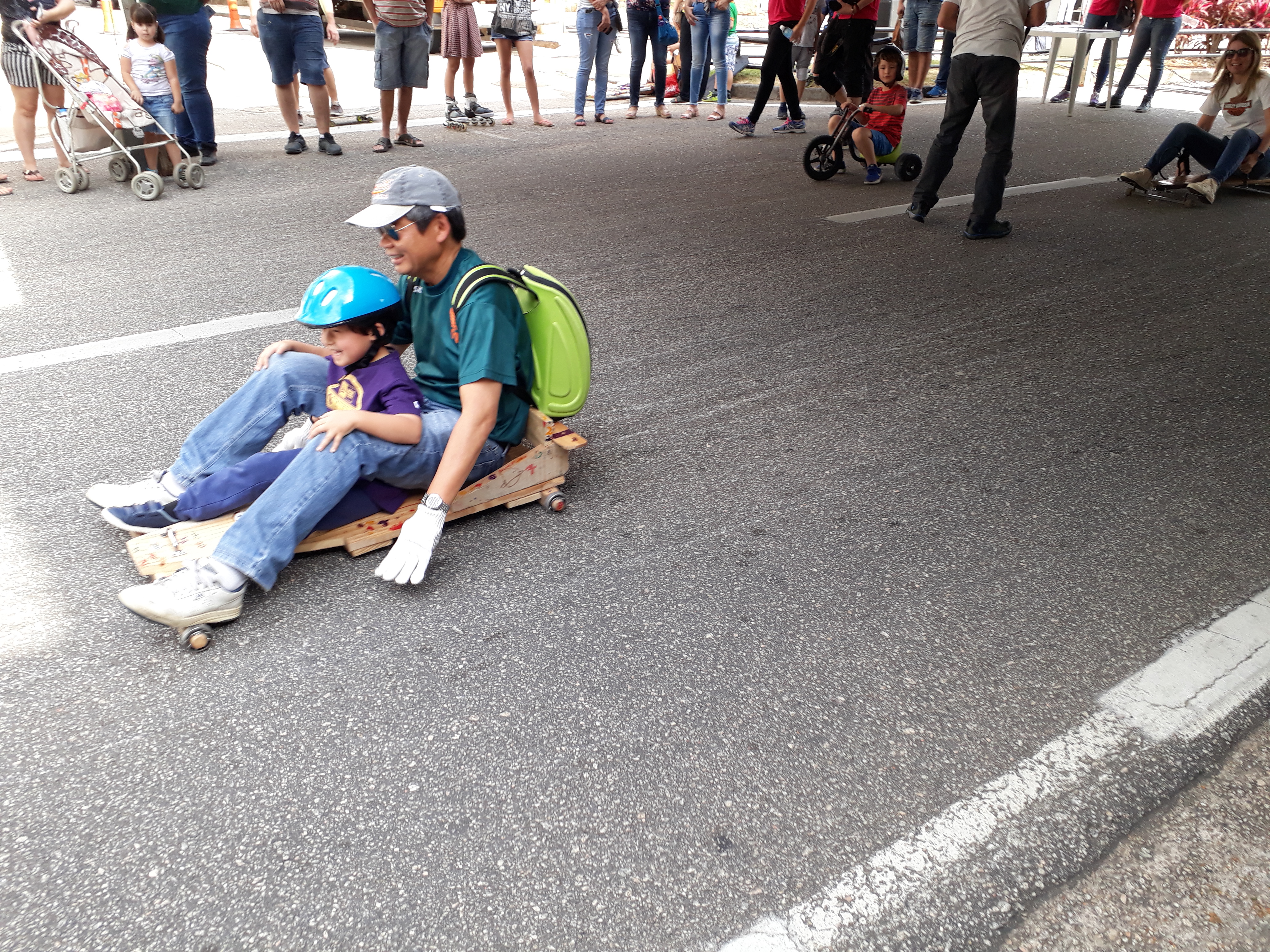 Aos 59 anos, o técnico em segurança do trabalho, Luiz Carlos Cantarin teve muita disposição para descer e subir a Rua São Bento a bordo do seu carrinho de rolimã. “É difícil achar uma diversão como essa. Aliás, fazia tempo que eu não me divertia tanto como hoje”, contou o técnico que, ao lado do filho, não poupou esforço neste domingo.
