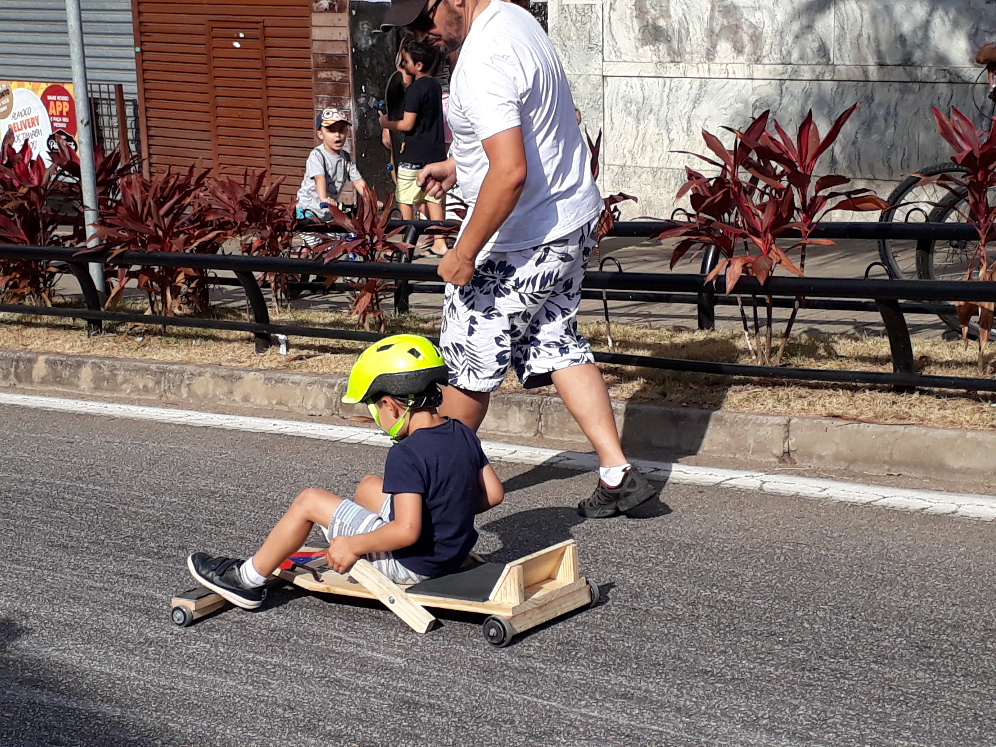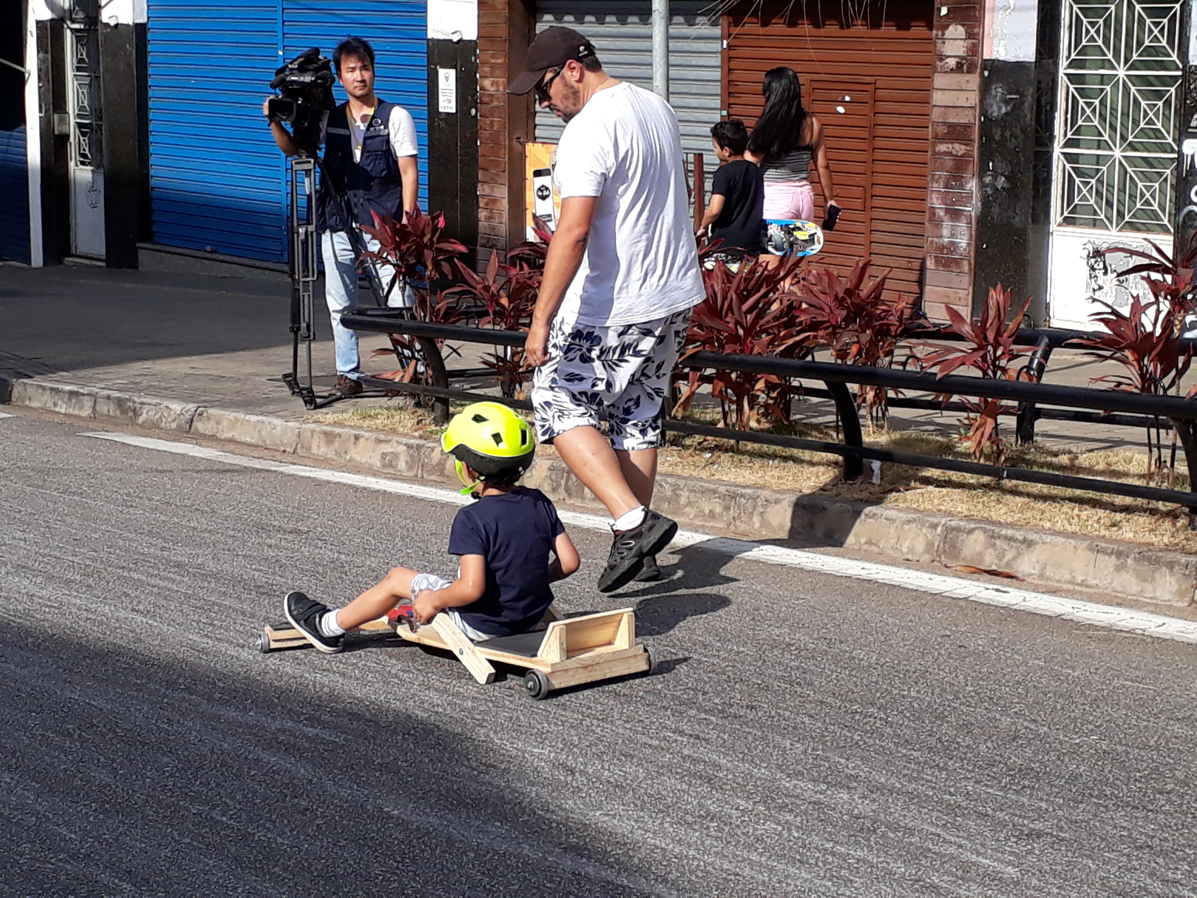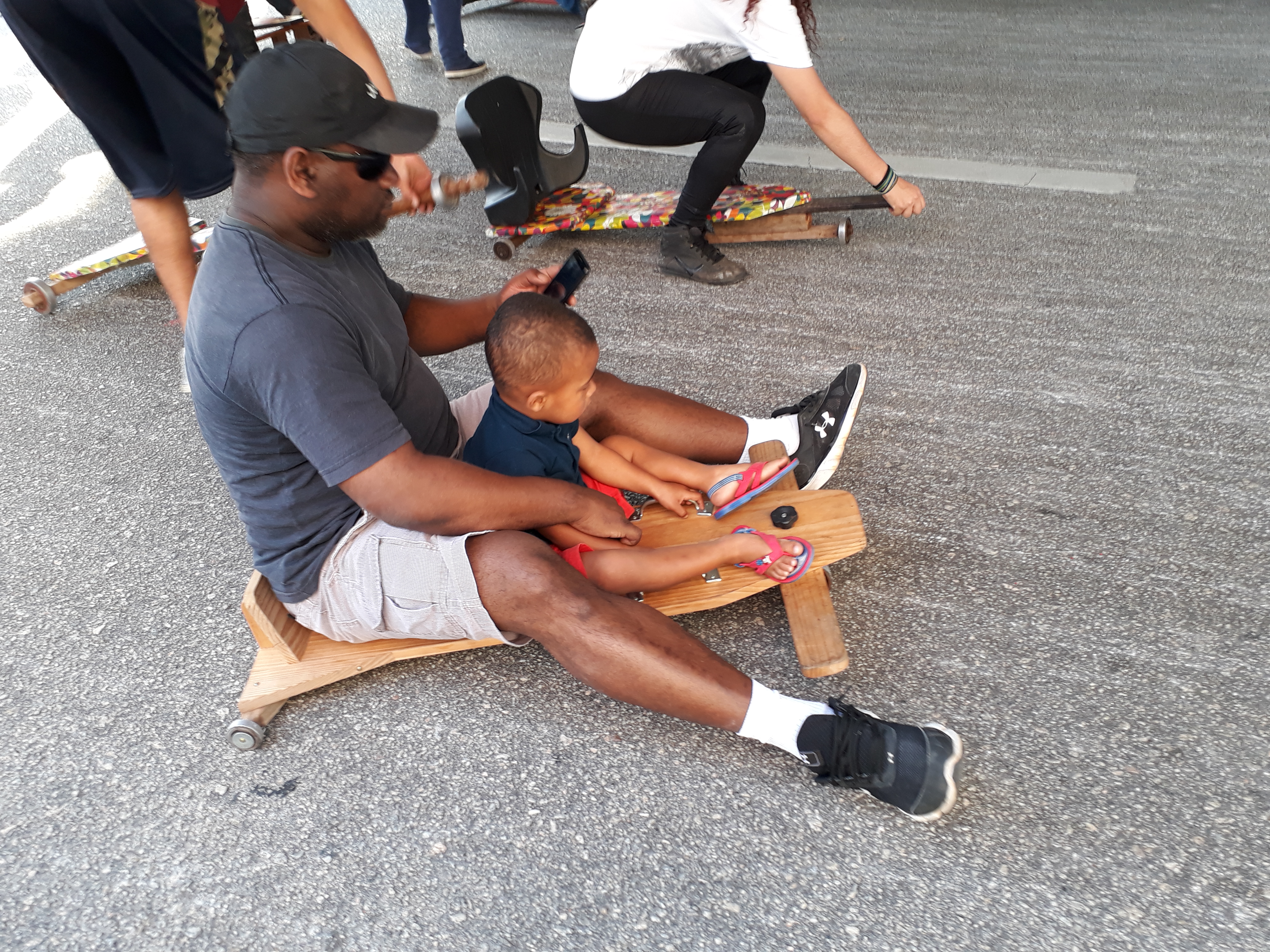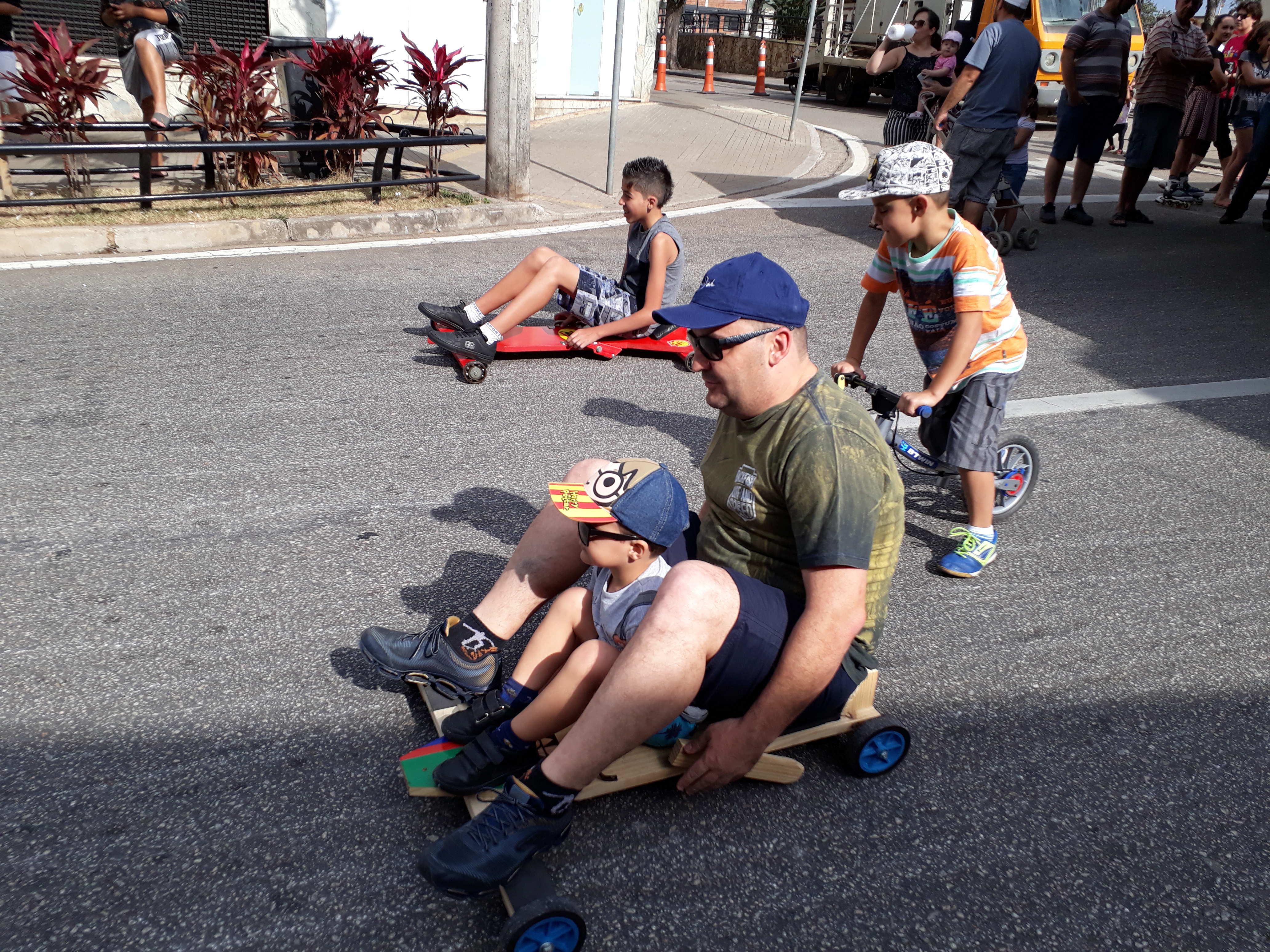 Em meio a tantas tecnologias, o carrinho de rolimã mostrou que jamais será surpreendido por qualquer outra inovação. Que digam os adeptos da brincadeira que não pouparam elogios ao evento realizado neste domingo. Um deles foi Edmilson Siqueira, da Zona Norte, que levou os dois filhos – Eliel, de 16, e Emanuel, de 7 -, para aproveitar a brincadeira. Tanto Edmilson quanto o filho, Eliel, fizeram questão de ir caracterizados: o pai, com a fantasia dos personagens Deadpool, e o filho, de Homem-Aranha, o que acabou chamando a atenção do público. “É isso que eu quero para os meus filhos, esse é o resgate da verdadeira brincadeira. Enquanto eles estão aqui, estão longe das coisas ruins, estão longe do celular, do tablet. Isso é muito importante para a formação deles”, disse o pai que já construiu um carrinho de rolimã para os filhos.