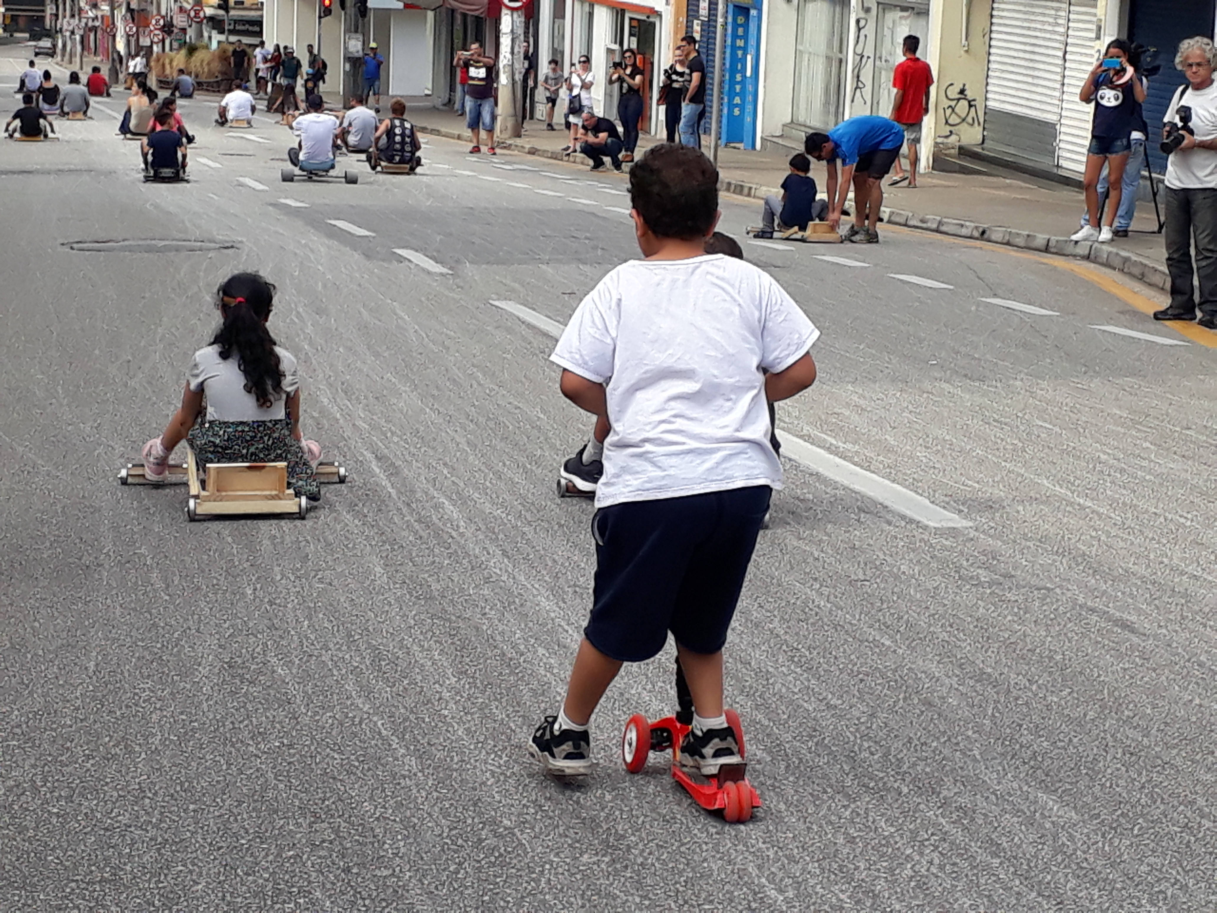 Se no passado a brincadeira era tipicamente masculina, hoje, não há mais como dizer que só os “meninos” brincam com o carrinho de rolimã. O que foi visto neste domingo na rua São bento foram mulheres de todas as idades se divertindo com o brinquedo.