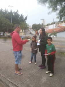 Na caminhada, meninos e meninas abordaram pessoas que caminhavam pelo local, moradores e até quem estava em estabelecimentos comerciais e falavam sobre o Dia Mundial do Meio Ambiente. Eles também pediram ajuda a todos para cuidar do bairro e ainda entregaram um folheto que eles mesmo fizeram há 15 dias numa atividade da Semana do Lixo Zero.
