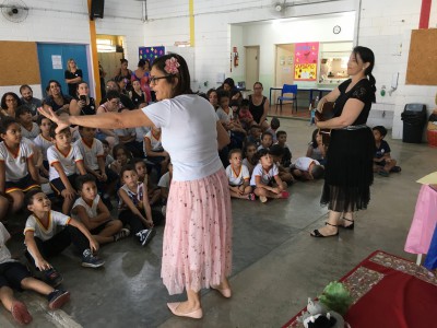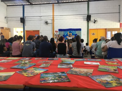O evento que contou com a participação da comunidade local teve contação de história com a gestora de desenvolvimento educacional, Leila Chinelatto, e a professora, Soraia Uno, e atividades de dinâmica com as famílias presentes por meio de leitura e sensibilização de uso dos livros.