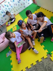 De acordo com Janaina Bolonha, a leitura coaduna variados temas que acontecem na escola. “Desenvolvemos um trabalho bem integrado. Se fizermos uma atividade com horta, vamos procurar tratar este tema na leitura. Em cada exercício procuramos abordar o acolhimento e lincar histórias que trabalhem os sentimentos das crianças de acordo com o que trazem de seus lares, a fim de melhorar o relacionamento entre os colegas e o comportamento em âmbito geral”, disse a professora.