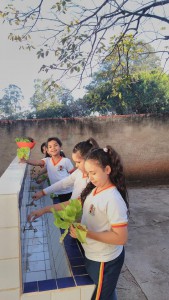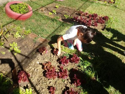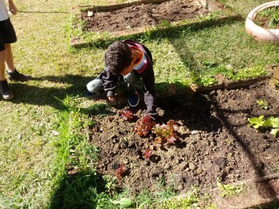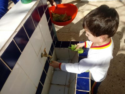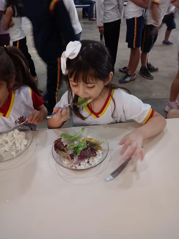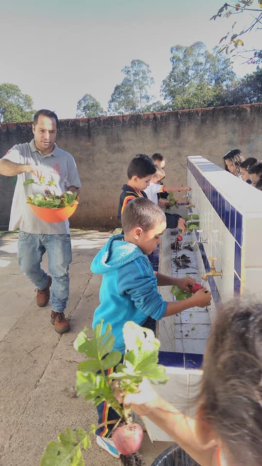 O projeto cresceu e conta com a participação de todas as turmas da unidade. “Hoje a escola toda participa, desde o planejamento, o plantio na sementeira ou direto no canteiro, na rega e cuidado durante o crescimento até a colheita, em cada estágio desses, eles recebem uma explicação sobre a importância dos alimentos que estão cultivando. Depois da colheita eles ajudam a lavar e é servida uma salada fresquinha para eles experimentarem”, explica.