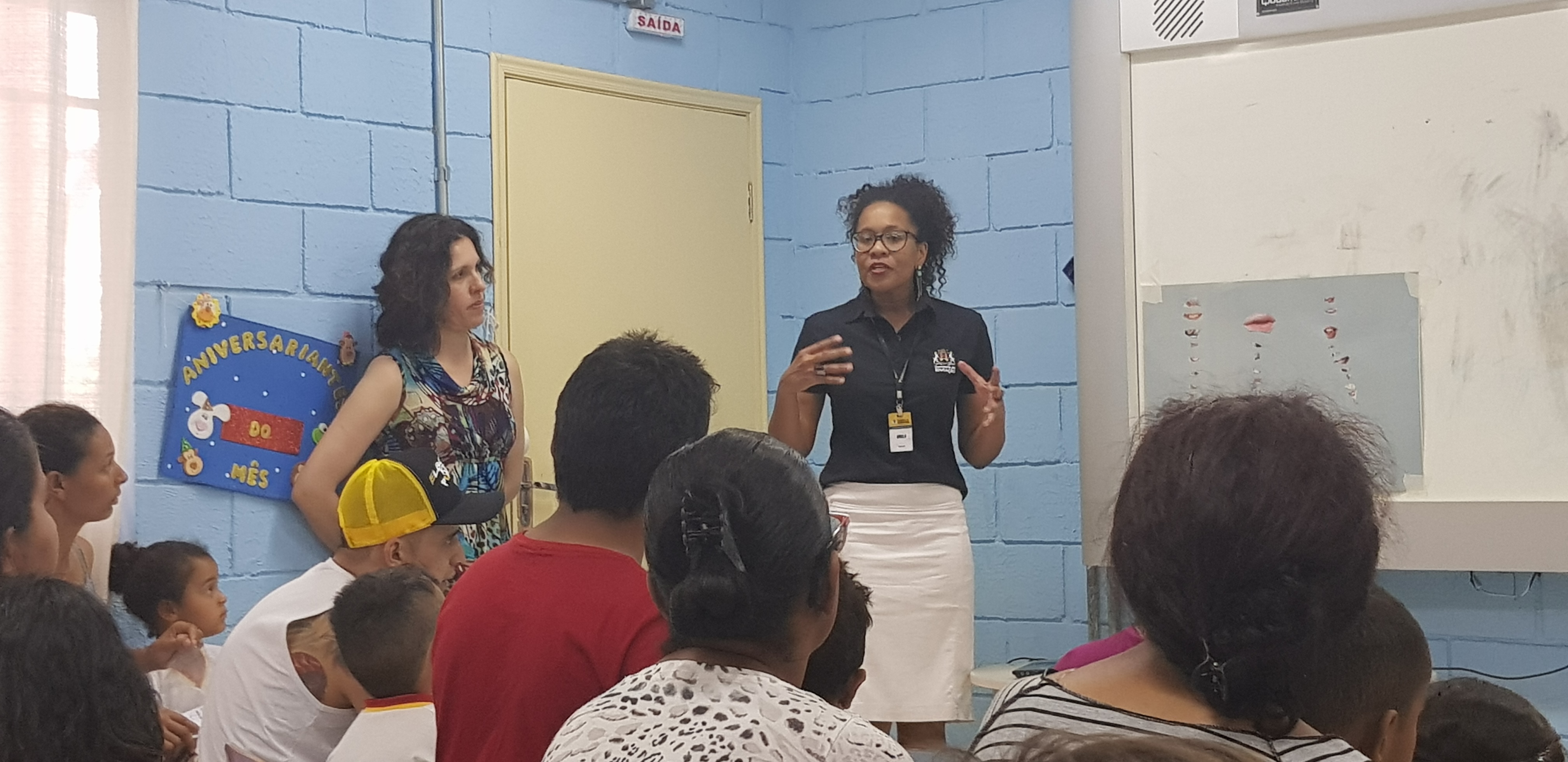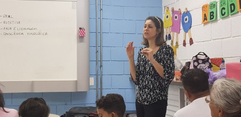 A reunião contou com a participação de familiares e professores da Escola Municipal Oswaldo Duarte e realizada pelas fonoaudiólogas da Equipe Multidisciplinar da Sedu. A ação foi destinada às crianças matriculadas no Pré-1, com idade entre 4 e 5 anos.