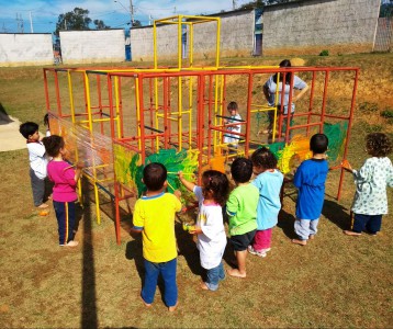 A professora, Karina Munhoz Paes, atua na rede municipal há três anos e atualmente leciona no CEI-96 “Prof.ª Adelaide Piva de Lima” para 23 alunos com idade entre dois e três anos.