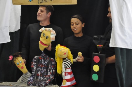 Já o teatro de fantoches “Sai Acidente” conta com personagens divertidos com o intuito de prender a atenção das crianças e ensiná-las a se comportar de forma segura no trânsito. Na peça os personagens ilustram de forma didática as situações que as crianças mais presenciam no cotidiano.