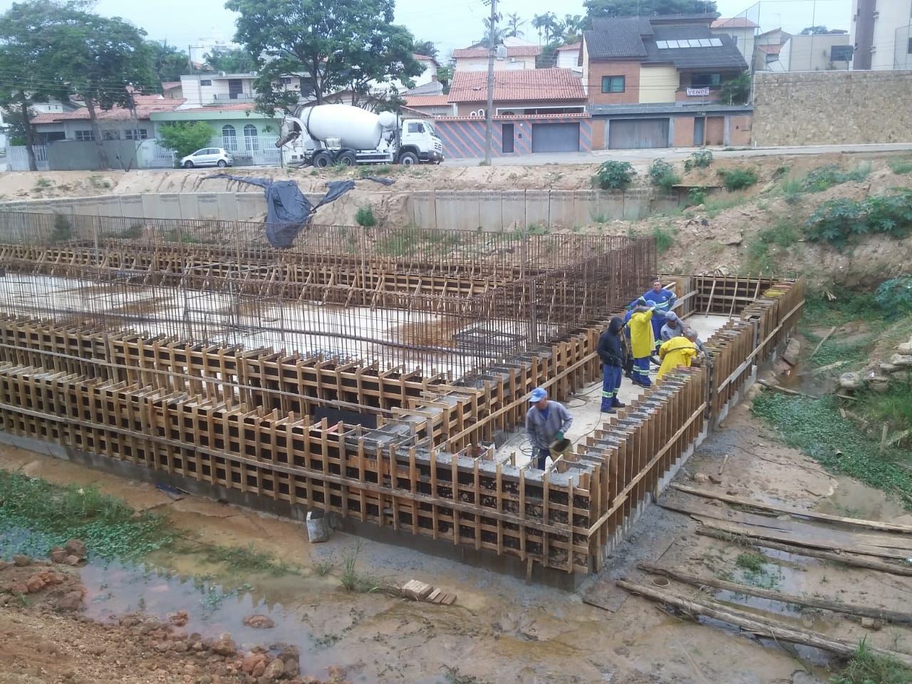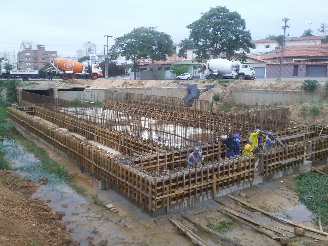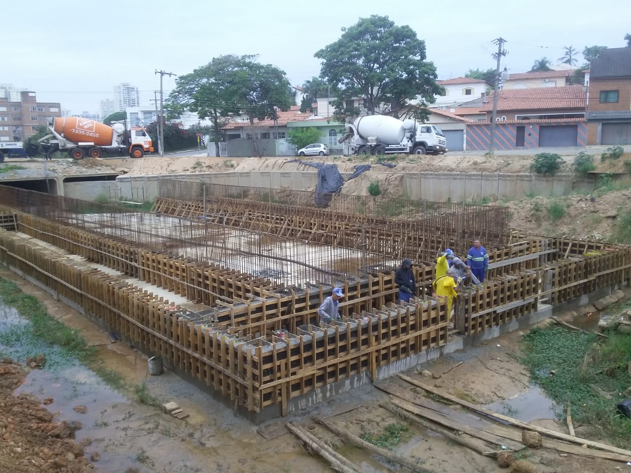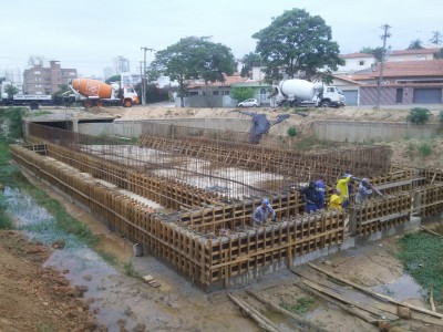 Mais uma importante etapa do equipamento antienchente no Jardim dos Estados está sendo realizada nesta terça-feira (5) pelo Saae-Sorocaba. Os trabalhos hoje se concentram na aplicação de concreto usinado nas armações de aço da estrutura de controle da vazão (ECV), da segunda bacia do Reservatório de Detenção de Cheias (RDC) do córrego da Água Vermelha.