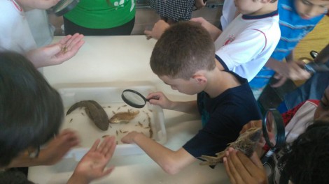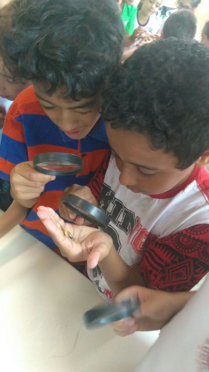 Inicialmente, a equipe de Educação Ambiental da Sema realizou um bate-papo com as turmas. Em seguida, foi apresentado alguns exemplares para que as crianças fizessem o manuseio e, utilizando uma lupa, observassem as suas estruturas.