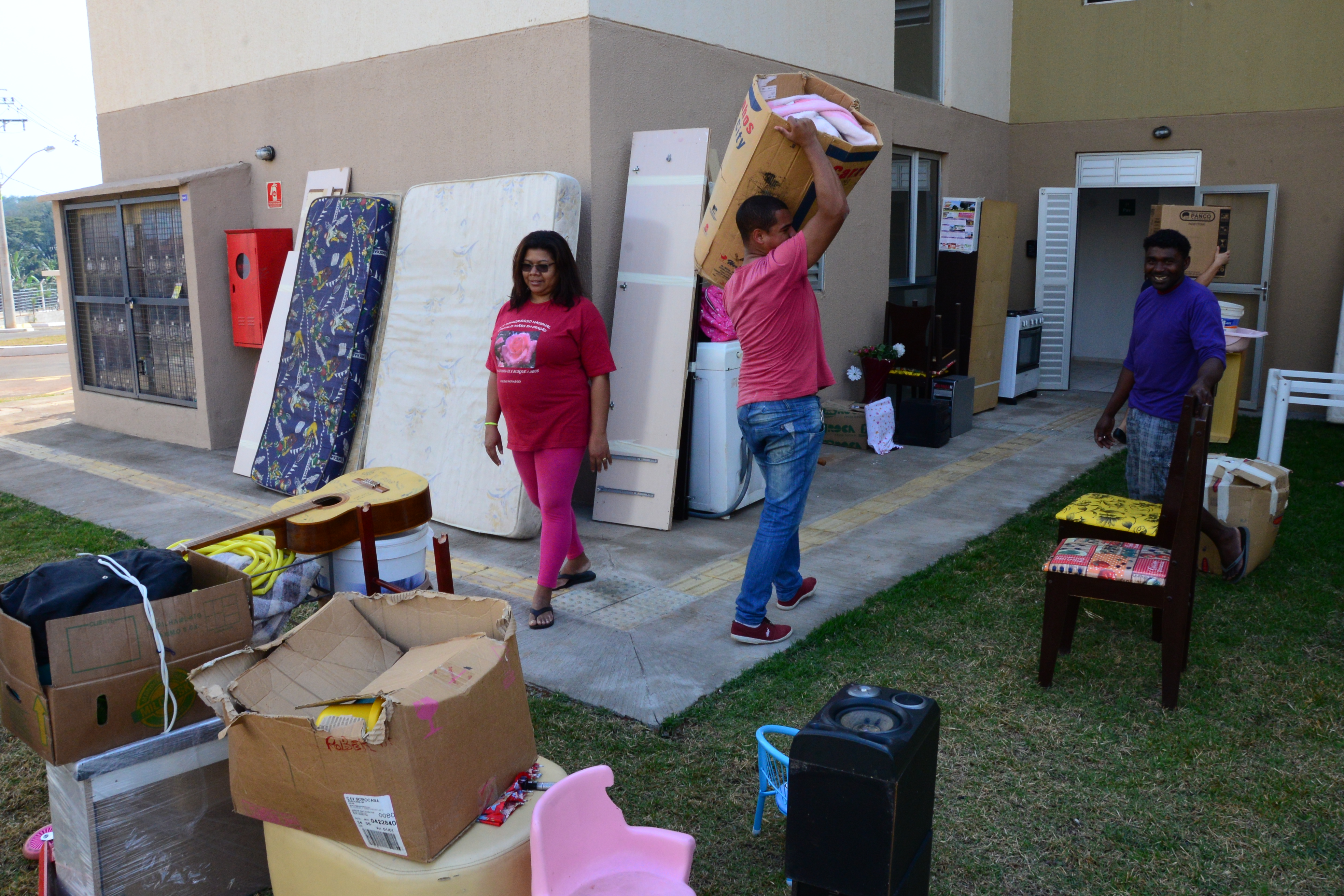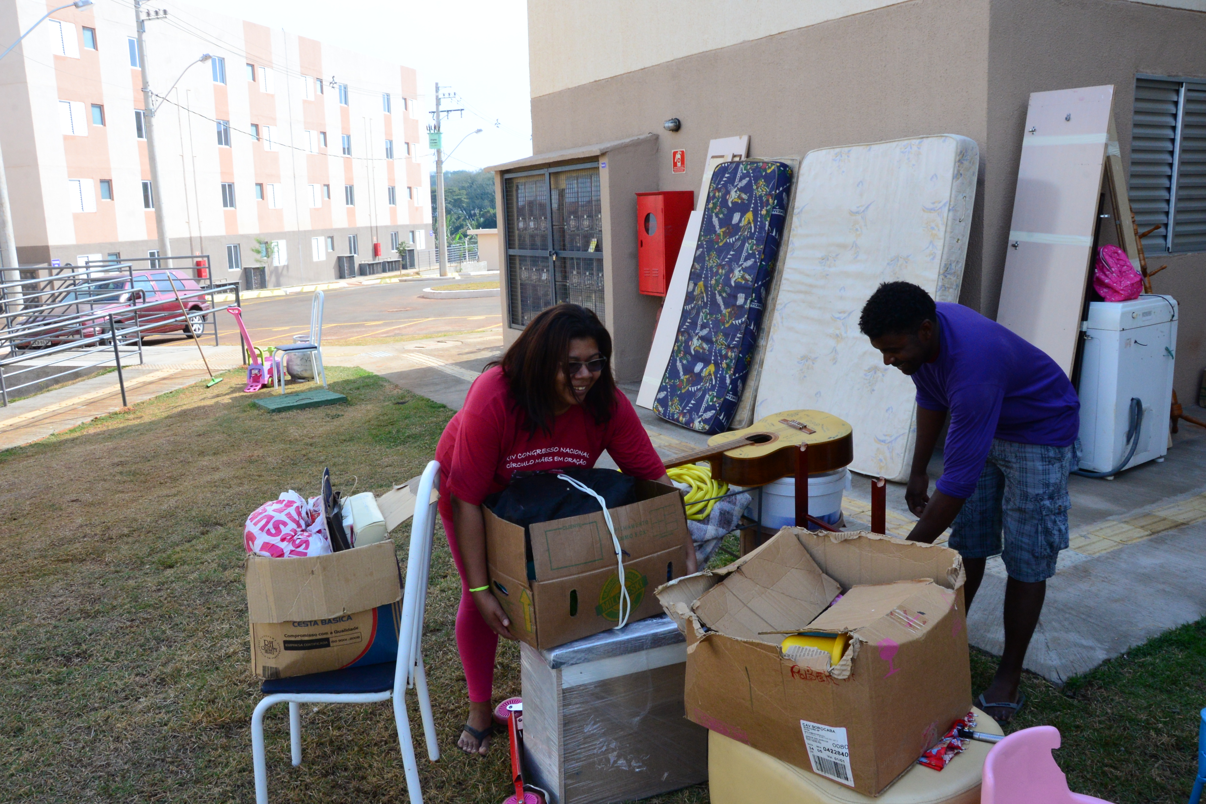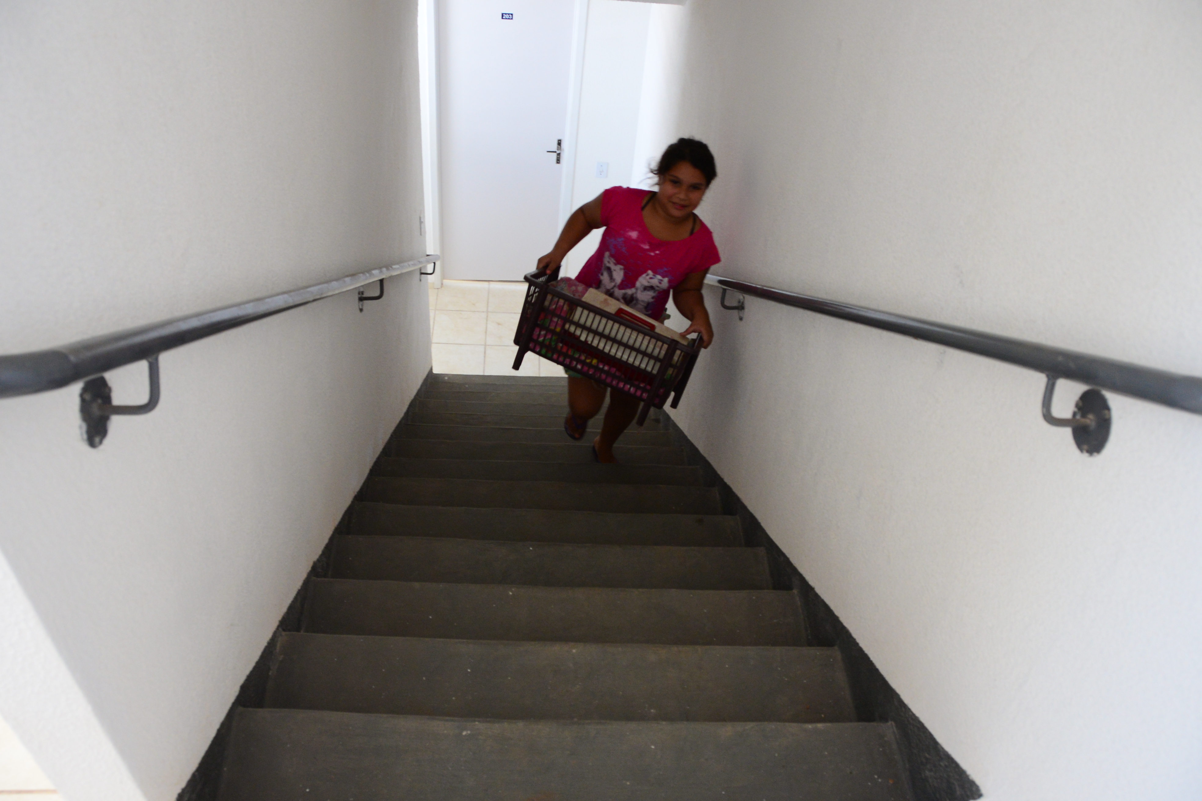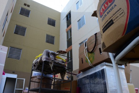Também se mudaram o aposentado Jeferson Carlos, a esposa Magali e mais quatro pessoas, entre filhos e enteados. Eles vão ocupar um apartamento no quarto andar de um dos blocos, mas não reclamam de ter que subir e descer as escadas. “É um esforço bom, afinal, conseguimos a nossa casa”, comenta. O enteado Hélio, 18 anos, ajudou a carregar móveis e caixas e fez tudo isso cantando, com fones no ouvido ele contou que estava ouvindo rap. “Assim nem percebo o tempo passar.”