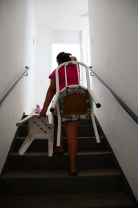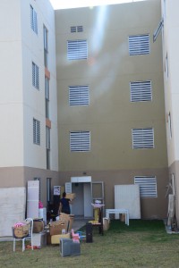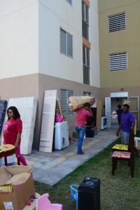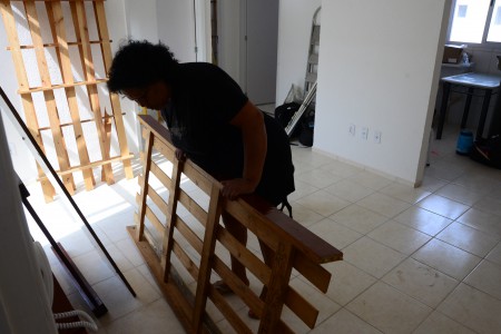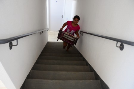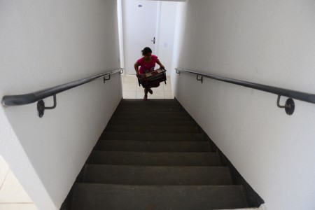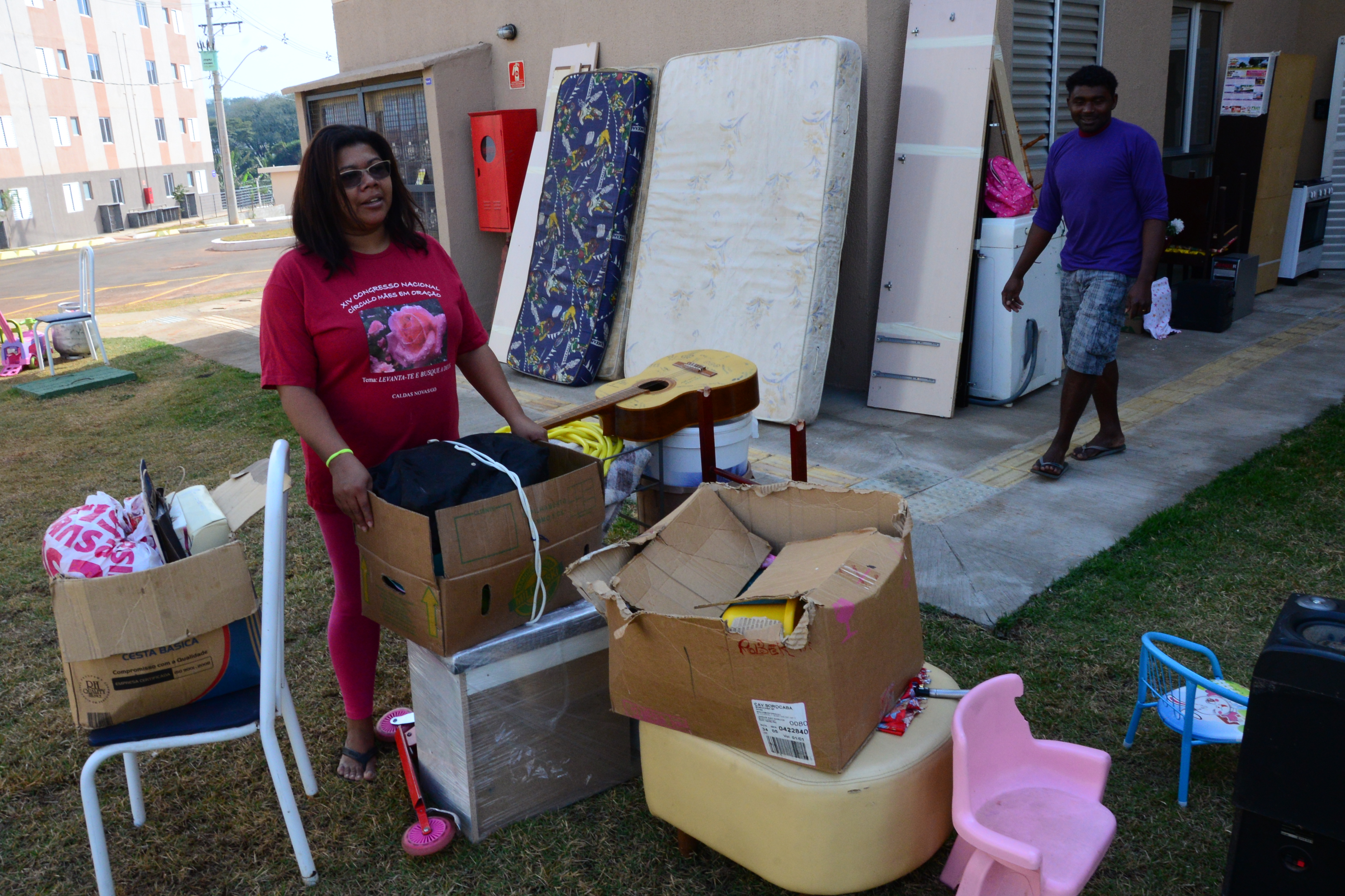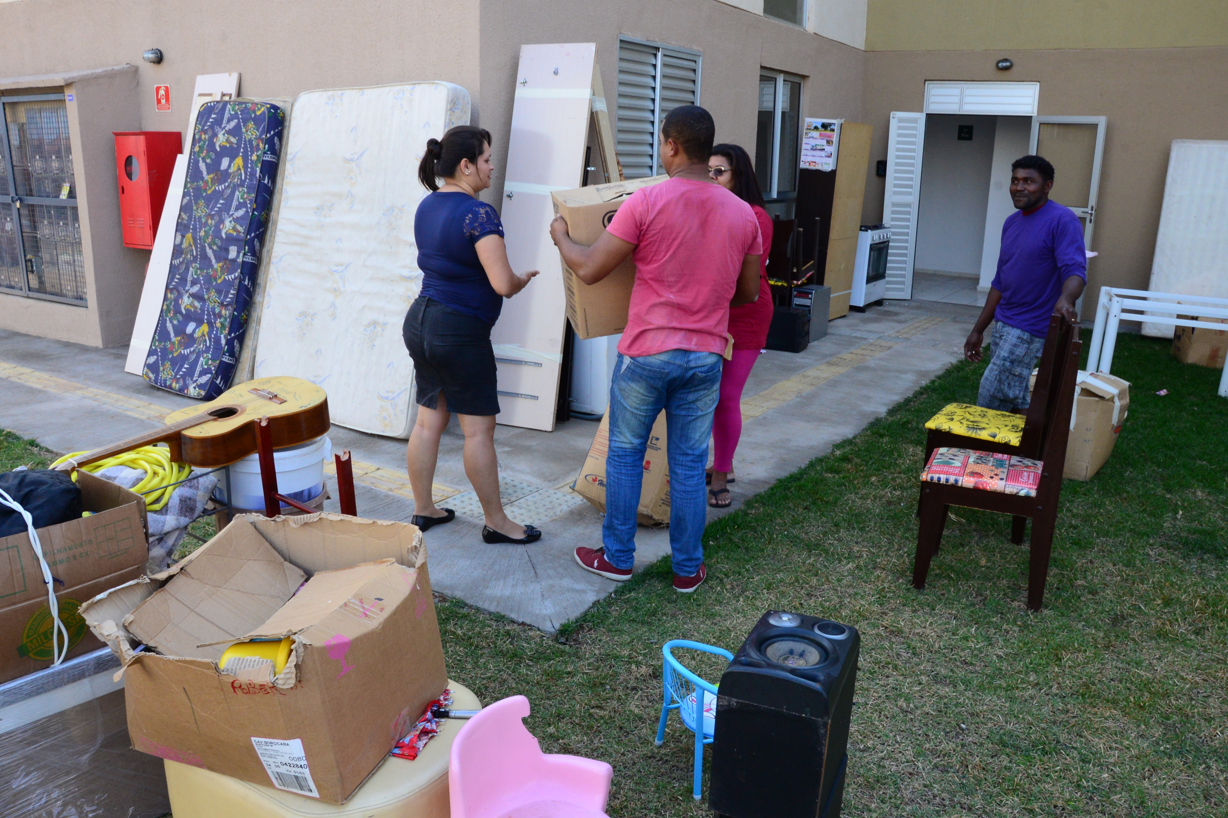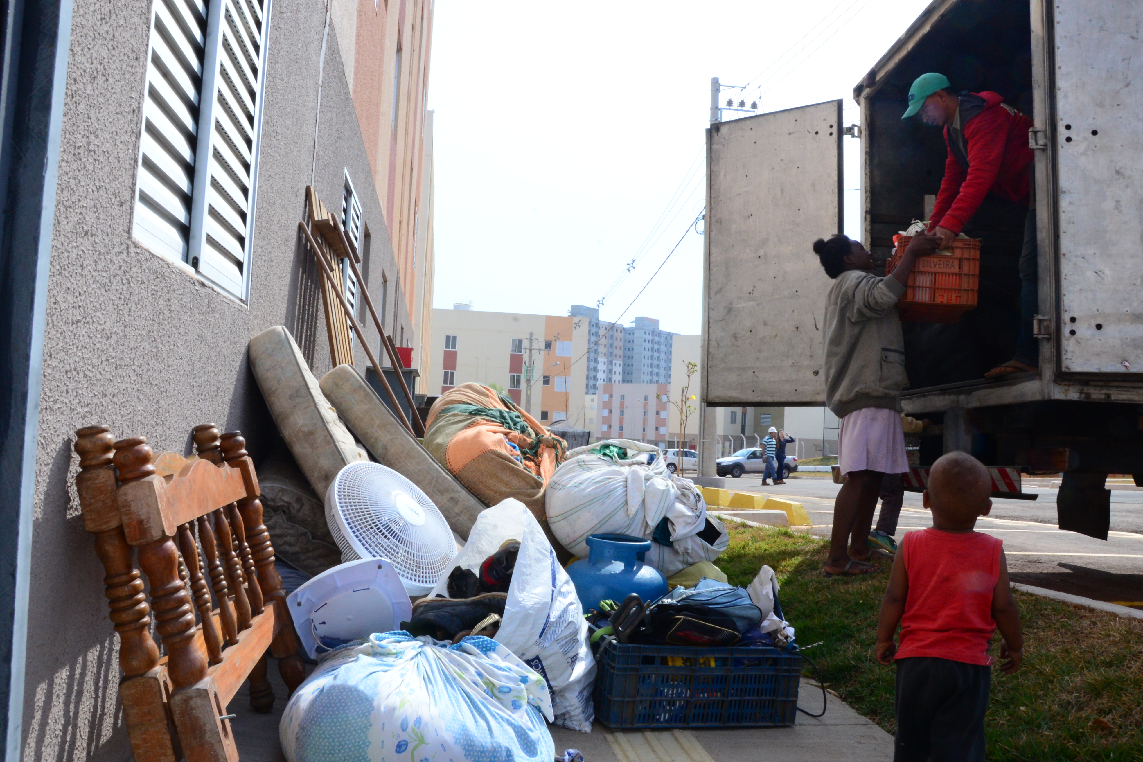 Também se mudaram o aposentado Jeferson Carlos, a esposa Magali e mais quatro pessoas, entre filhos e enteados. Eles vão ocupar um apartamento no quarto andar de um dos blocos, mas não reclamam de ter que subir e descer as escadas. “É um esforço bom, afinal, conseguimos a nossa casa”, comenta. O enteado Hélio, 18 anos, ajudou a carregar móveis e caixas e fez tudo isso cantando, com fones no ouvido ele contou que estava ouvindo rap. “Assim nem percebo o tempo passar.”