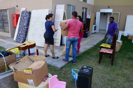 A dona de casa Ionete de Sena França, 35 anos, foi uma das primeiras a chegar. Com ajuda do marido e dos filhos ela descarregava o caminhão. Trouxeram os objetos normais de uma casa: cama, geladeira, fogão, roupas, utensílios domésticos, além de objetos de valor sentimental, como o violão da filha de 14 anos, 04 passarinhos e 01 peixinho. A dona de casa estava aliviada porque as prestações da casa onde morava antes, no Jardim São Marcos, estavam atrasadas. “A gente corria o risco de despejo. Agora nunca mais vamos passar por isso”, desabafa.