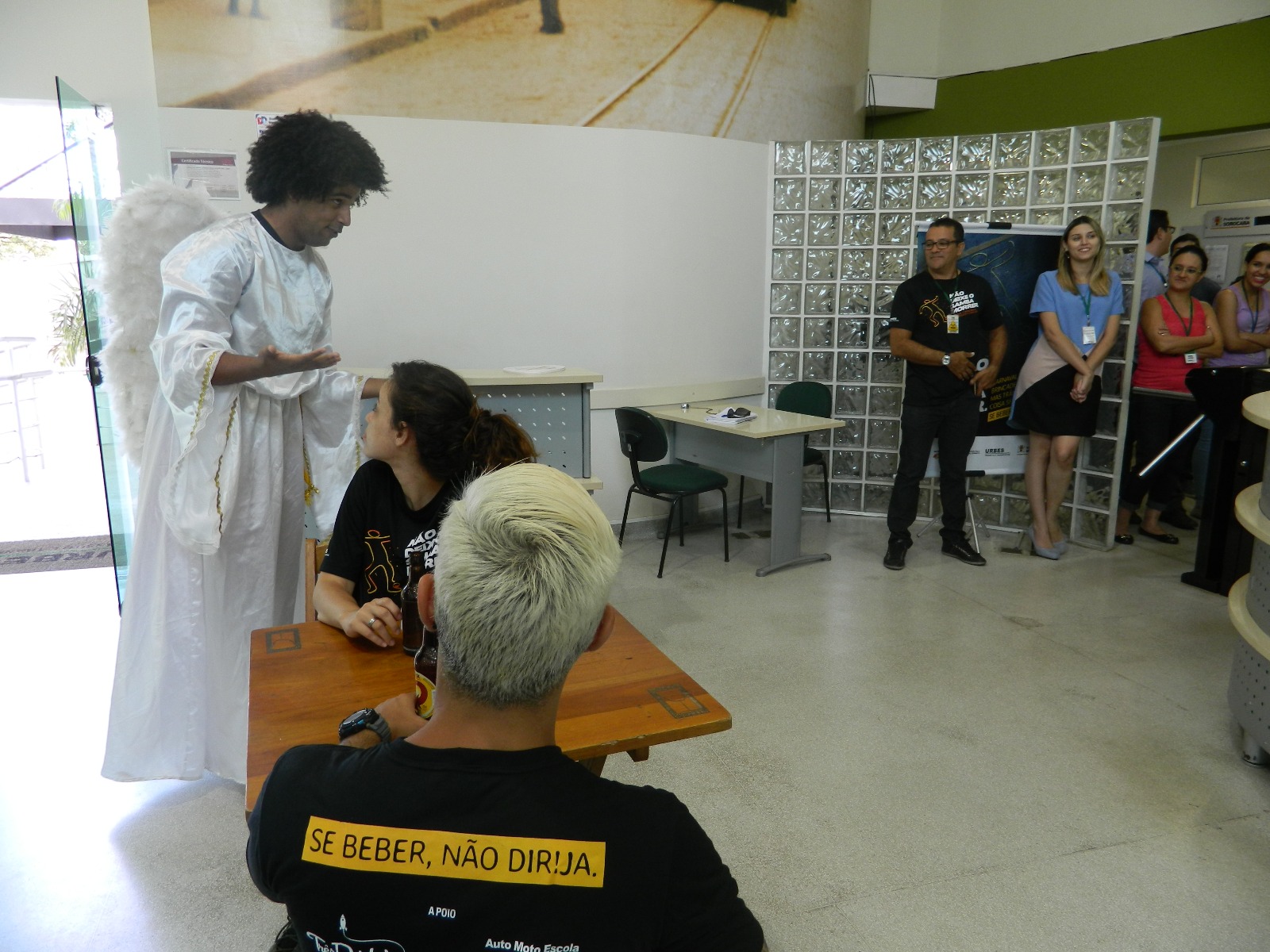 Na apresentação teatral, um jovem chega num bar completamente embriagado, procurando pela chave do seu carro, e perguntando se alguém a encontrou. Em seguida, a morte chega com a sua chave do carro. Assustado, ele desconversa dizendo que a chave não é dele, mas a morte leva ele embora para dirigir. Ao final, um anjo chega ao local e alerta a todos sobre os perigos de beber e dirigir.
