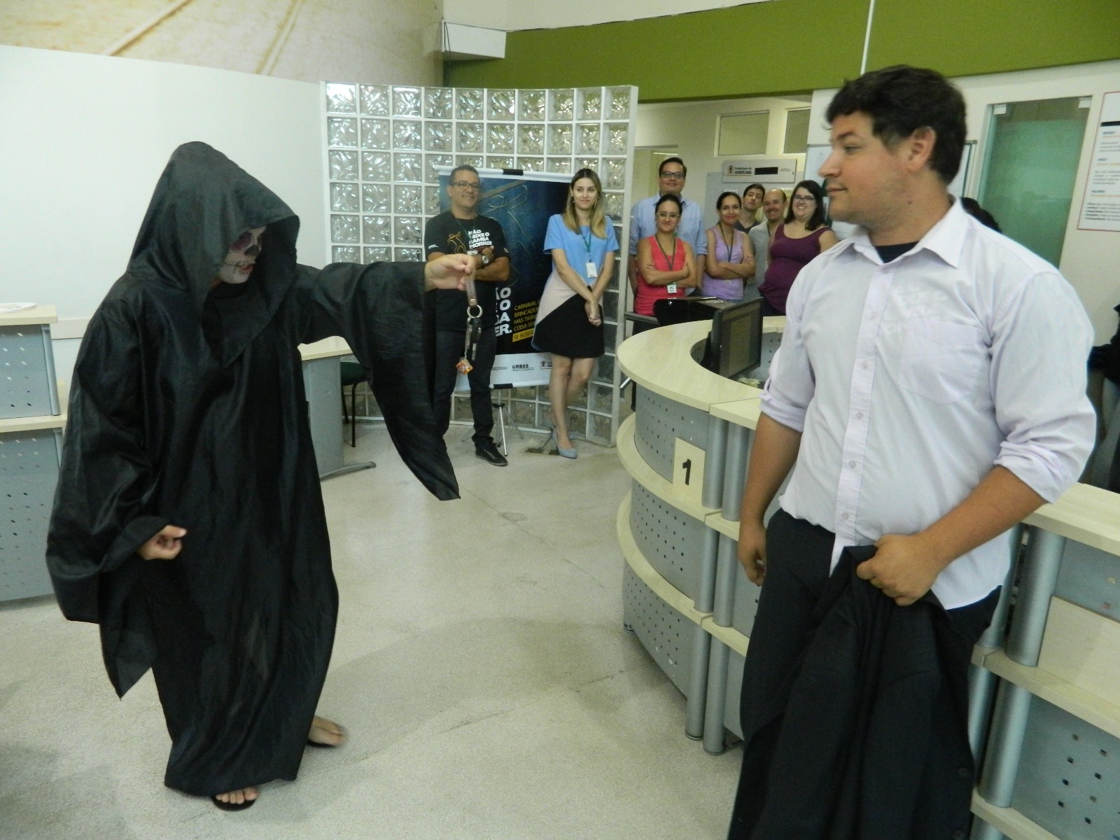 Cerca de 80 funcionários que atuam na sede da Urbes – Trânsito e Transportes, no Jardim Panorama, tiveram a oportunidade de acompanhar e participar nesta quarta-feira (dia 22) uma das ações educativas da Campanha de Carnaval 2017, que tem como tema “Carnaval é brincadeira, mas trânsito é coisa séria”. Além de receberem um material educativo, eles assistiram uma peça de teatro que, de uma forma descontraída, abordou a reflexão das pessoas sobre o perigo de beber e dirigir.