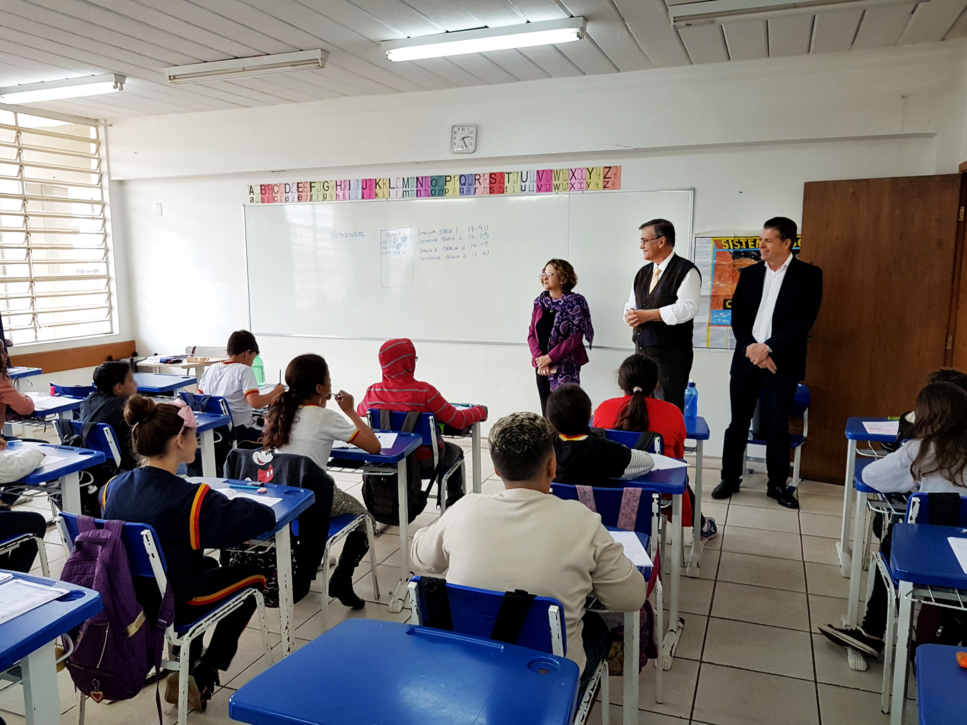 Por volta das 14h30, os Secretários e o prefeito chegaram à escola e foram acompanhados pelo diretor Daniel Merlin e pela vice. Eles percorreram os corredores e entraram em algumas salas de aula para acompanhar a realização da Prova Brasil, realizada por alguns alunos. Segundo Marta, a visita foi para acompanhar um importante processo que mais de 5 mil alunos dos 5° anos da rede municipal participam, a Prova Brasil – pois é baseado nesta avaliação que os IDEB (Índice de Desenvolvimento da Educação Básica).