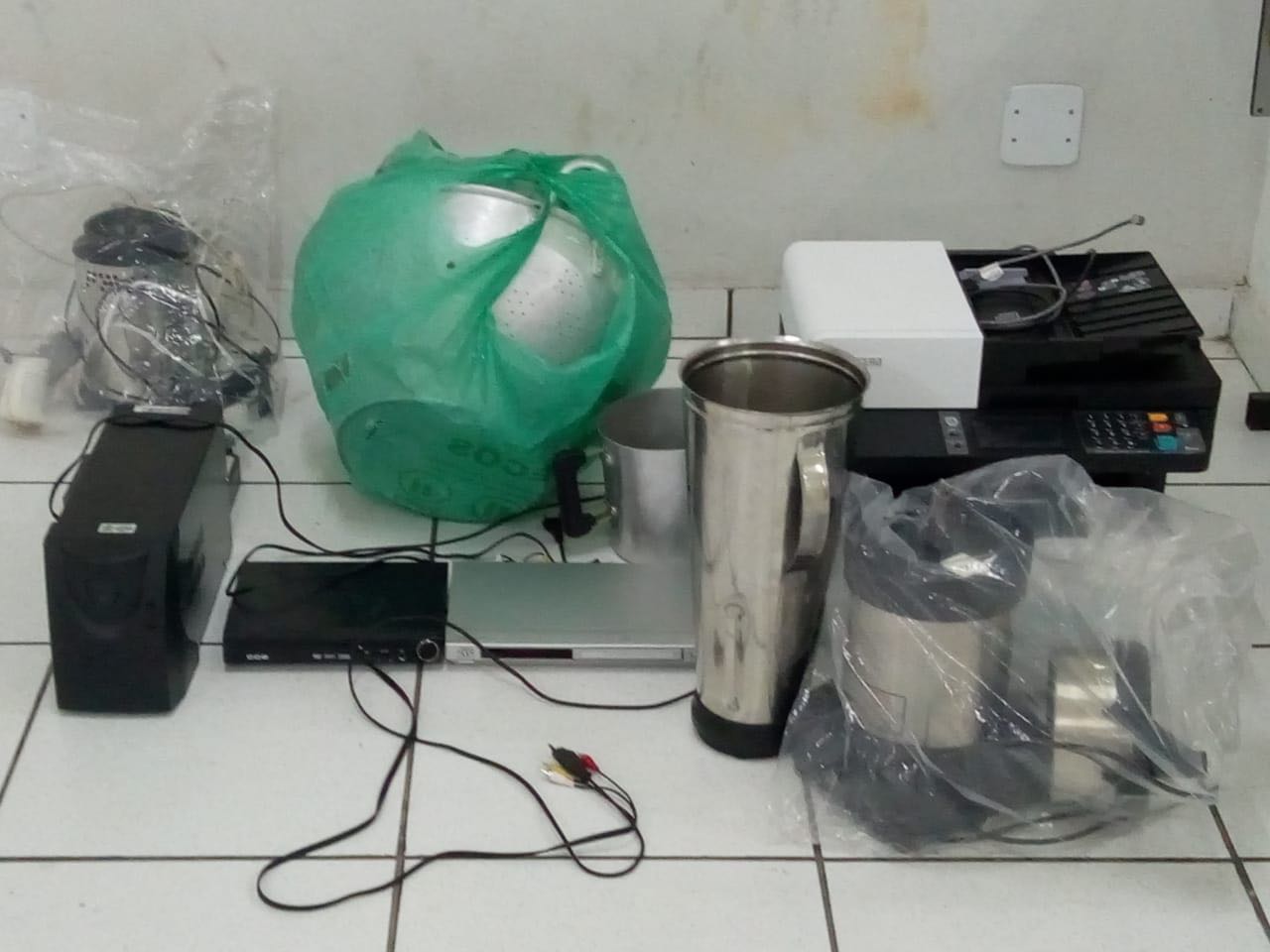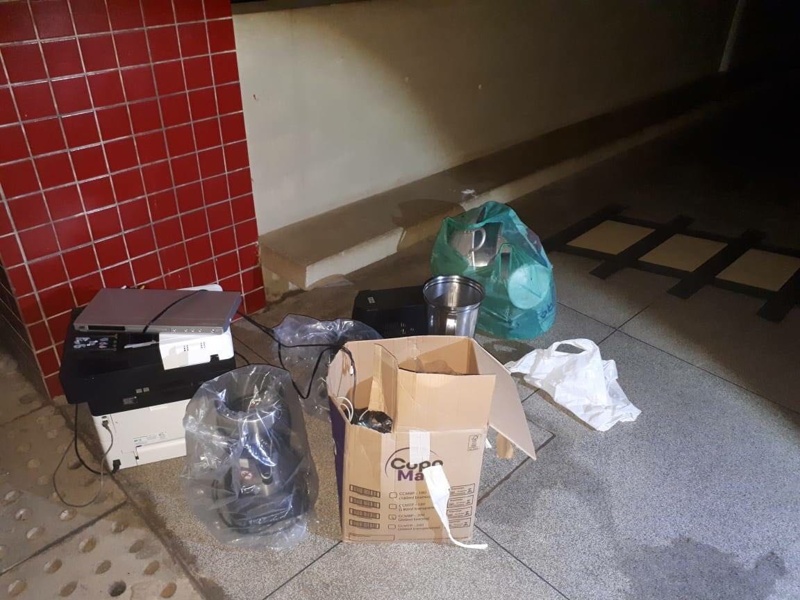 A ROMU (Ronda Ostensiva Municipal) foi designada rapidamente para a unidade escolar, onde se deparou com D.A.R.F, de 31 anos, tentando sair da unidade com os objetos a serem furtados: 2 impressoras, 2 liquidificadores industriais, 2 aparelhos de DVD, 1 aparelho de Net, 1 extensão 4 panelas e 1 chaleira. O infrator tentou fugir assim que notou a presença da equipe, mas foi alcançado quando tentava pular um muro. Os GCMs conseguiram recuperar todos os objetos.