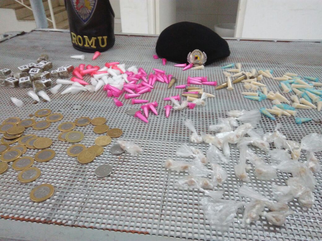 O indivíduo carregava uma bolsa pequena e, dentro dela, foram encontradas 239 porções de entorpecentes, entre maconha, cocaína e crack. Após a confissão da comercialização das drogas, o indivíduo foi levado para a DPP Norte, onde foi registrado o Boletim de Ocorrência e ele encaminhado ao sistema prisional.