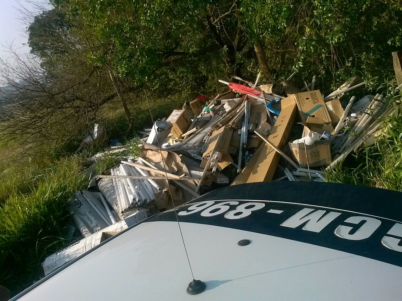 Na manhã desta quarta-feira (15), a Guarda Civil Municipal localizou aproximadamente mil lâmpadas fluorescentes descartadas irregularmente numa área pública no bairro Cajuru do Sul.