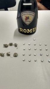 A droga encontrada, foi encaminhada ao departamento de perícia criminal e a motocicleta, ao pátio de veículos.