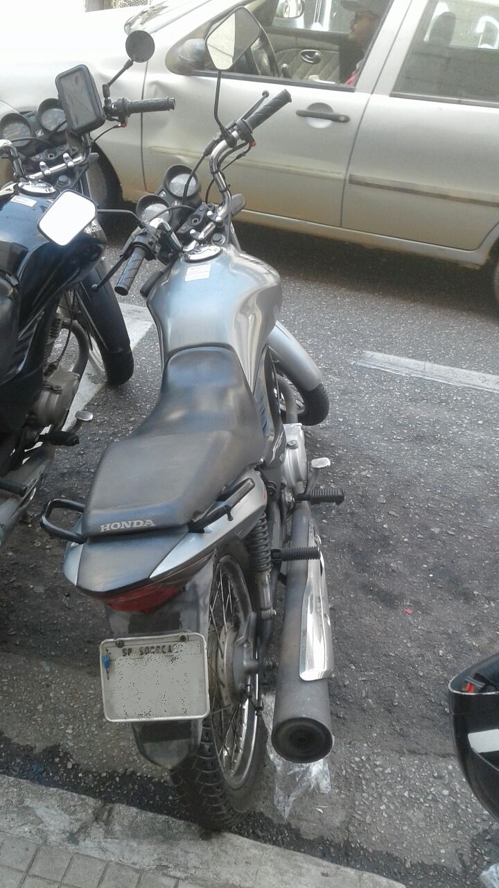 Na ação, a equipe de apoio à Fiscalização se deparou com uma moto da marca Honda/CG 150 FAN estacionada irregularmente em uma vaga específica para carga e descarga. O proprietário da motocicleta se aproximou e foi abordado pelos patrulhadores que fizeram revista pessoal e nada ilícito foi encontrado, porém, este não possuía habilitação e nem apresentou documento do motociclo que estava com o lacre rompido.
