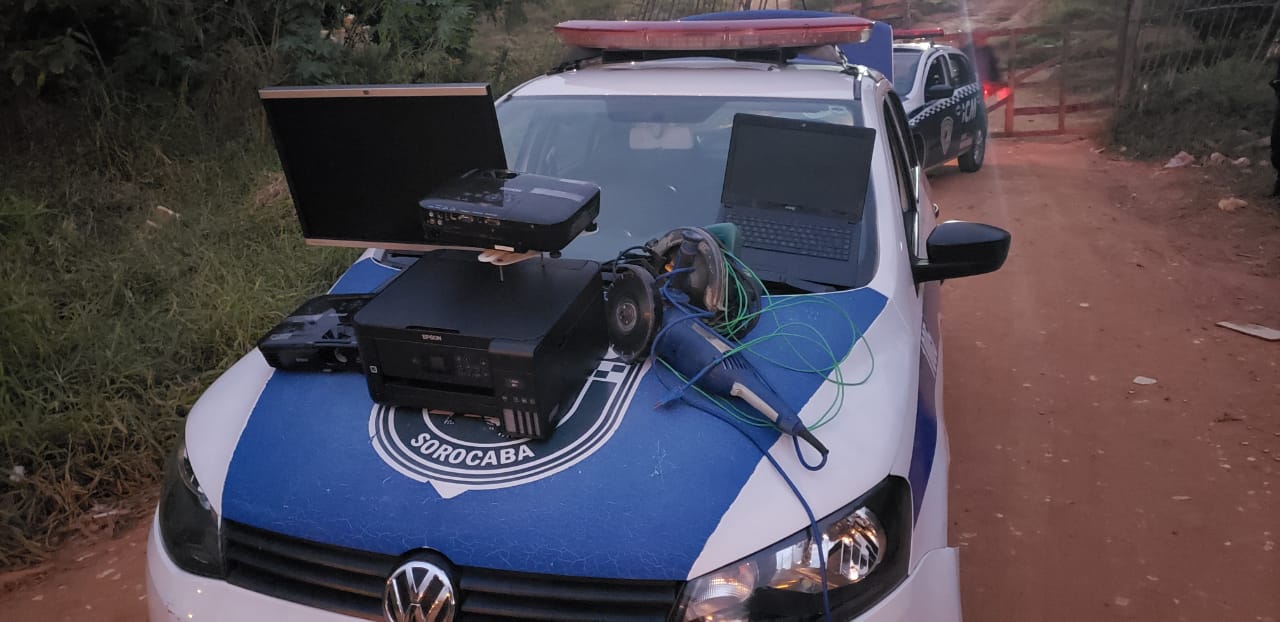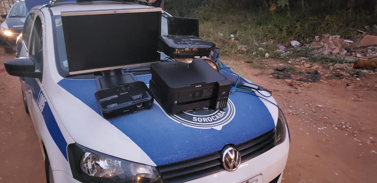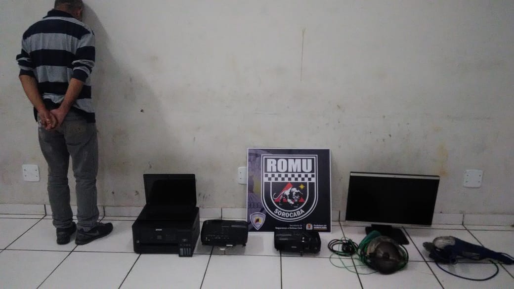 No final da tarde desta terça-feira (06), a ROMU realizava patrulhamento pelo Jardim Novo Horizonte, quando se deparou com O.F. de 46 anos, com um retroprojetor em mãos, este, negociava com outro indivíduo, que ao perceber aproximação da viatura empreendeu fuga, não sendo possível detê-lo. O abordado, que ficou parado com o objeto em mãos, quando questionado pelos guardas, relatou que tinha pago R$ 200,00 e também havia comprado uma impressora e um notebook da mesma pessoa, informou ainda a moradia do suposto furtador, onde chegando pelo local, a equipe teve a entrada franqueada pela genitora do infrator da Lei, e em seu quarto foi localizado mais 01 computador HP, 01 Retroprojetor, 01 Lixadeira e 01 Serra Circular. Todos equipamentos apreendidos foram identificamos pelas diretoras das unidades escolares.