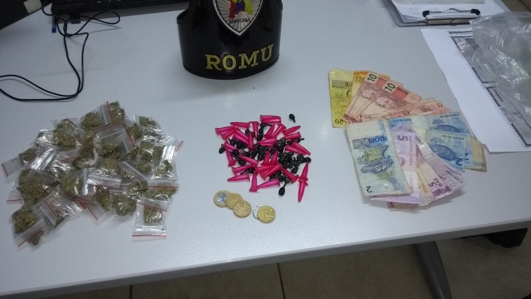 Uma equipe da Ronda Municipal (Romu), se deparou com um rapaz, que ao perceber a presença dos guardas, tentou fugir em direção à uma área verde, vindo a ser abordado após sofrer uma queda. Durante revista pessoal, os guardas localizaram na blusa do indivíduo de 21 anos, 32 pinos de cocaína, 47 porções de maconha, 44 pedras de crack, além de R$153,00 em notas diversas.