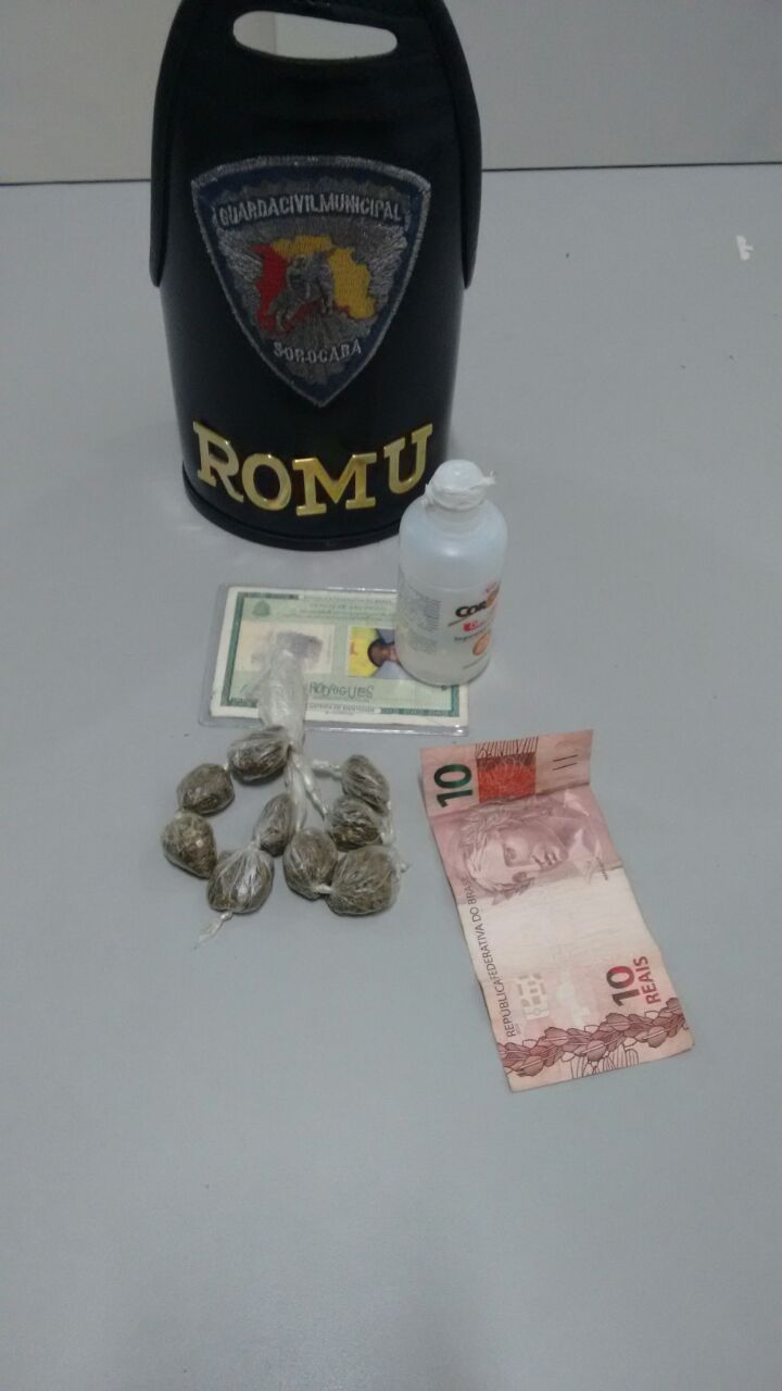 O suspeito resistiu com agressividade à abordagem e à revista pessoal. Durante a revista, os Guardas Civis encontraram no bolso do adolescente 09 porções de substância análoga à maconha e a importância de R$ 10,00, e também um frasco contendo um líquido que, segundo o garoto, se tratava de “lança-perfume”, para ser vendido em um local conhecido como “Segunda Estação”.
