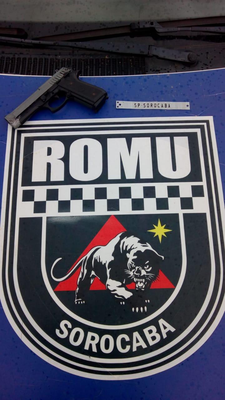 Autorizada pela mãe, foi realizada uma busca no quarto do adolescente e localizada uma tarjeta de emplacamento de Sorocaba e também uma réplica de pistola 380.