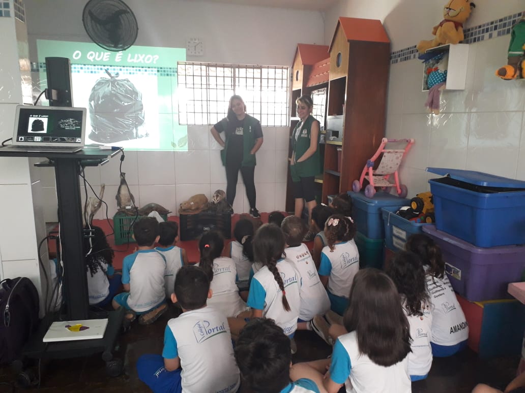 Uma ação de Educação Ambiental foi levada a mais de 100 alunos do Colégio Portal, no Éden, nesta terça-feira (17), com o objetivo de sensibilizá-los sobre a importância do descarte correto do lixo. A atividade foi solicitada à Secretaria do Meio Ambiente, Parques e Jardins (Sema) pela própria escola dentro do projeto “Além do Muro da Escola”, devido ao descarte de entulho realizado nas cabeceiras da ponte da rua Flor de Carvalho, também no bairro do Éden.