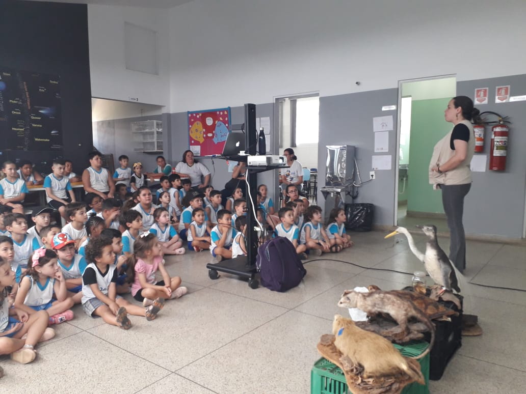 Como estratégia, além de fazer uma bate-papo para falar sobre o lixo e questões de consumo de plástico, por exemplo, a equipe da Sema levou animais taxidermizados (empalhados). Entre as espécies, os alunos puderam conhecer mais sobre o gambá, a tartaruga-marinha, a garça e o peixe cará e como eles sofrem com o descarte irregular de lixo.