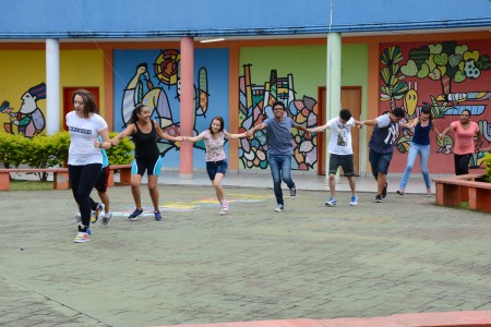 Neste primeiro dia, a palestrante Denise Gomes promoveu jogos e brincadeiras com os voluntários. Um deles foi o jogo Passaporte quando, divididos em grupos, os jovens deveriam encontrar os oito monitores que representavam países e estavam “escondidos” e com quem teriam seus passaportes carimbados mediante a realização de uma tarefa dada pelo monitor. A equipe que primeiro carimbasse todos os países ganharia o jogo.