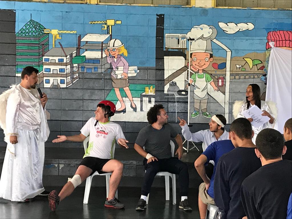 A Urbes – Trânsito e Transportes e a Secretaria de Educação (Sedu) promoveram na tarde de terça-feira (5) a peça “Casos Celestiais” para jovens que cumprem medida socioeducativa nos centros da Fundação Casa I e II. A apresentação teatral mostra aos adolescentes importantes noções sobre segurança no trânsito.