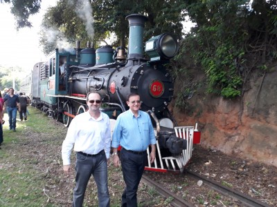 Os prefeitos das duas cidades e mais 30 convidados fizeram neste sábado o primeiro grande passeio experimental da tradicional Maria Fumaça