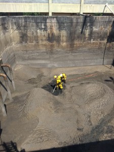 O tanque pulmão é o compartimento por onde passa o lodo antes da desidratação. O diretor Operacional de Produção do Saae-Sorocaba, Reginaldo Schiavi, explica que a limpeza consiste na retirada do acúmulo de lodo e areia deste local. “Esse serviço é realizado de três a quatro vezes por ano para garantir o perfeito funcionamento da ETE”, enfatiza o diretor Schiavi. Um volume de cerca de 50 metro cúbicos do material retirado é descartado em aterro sanitário apropriado.