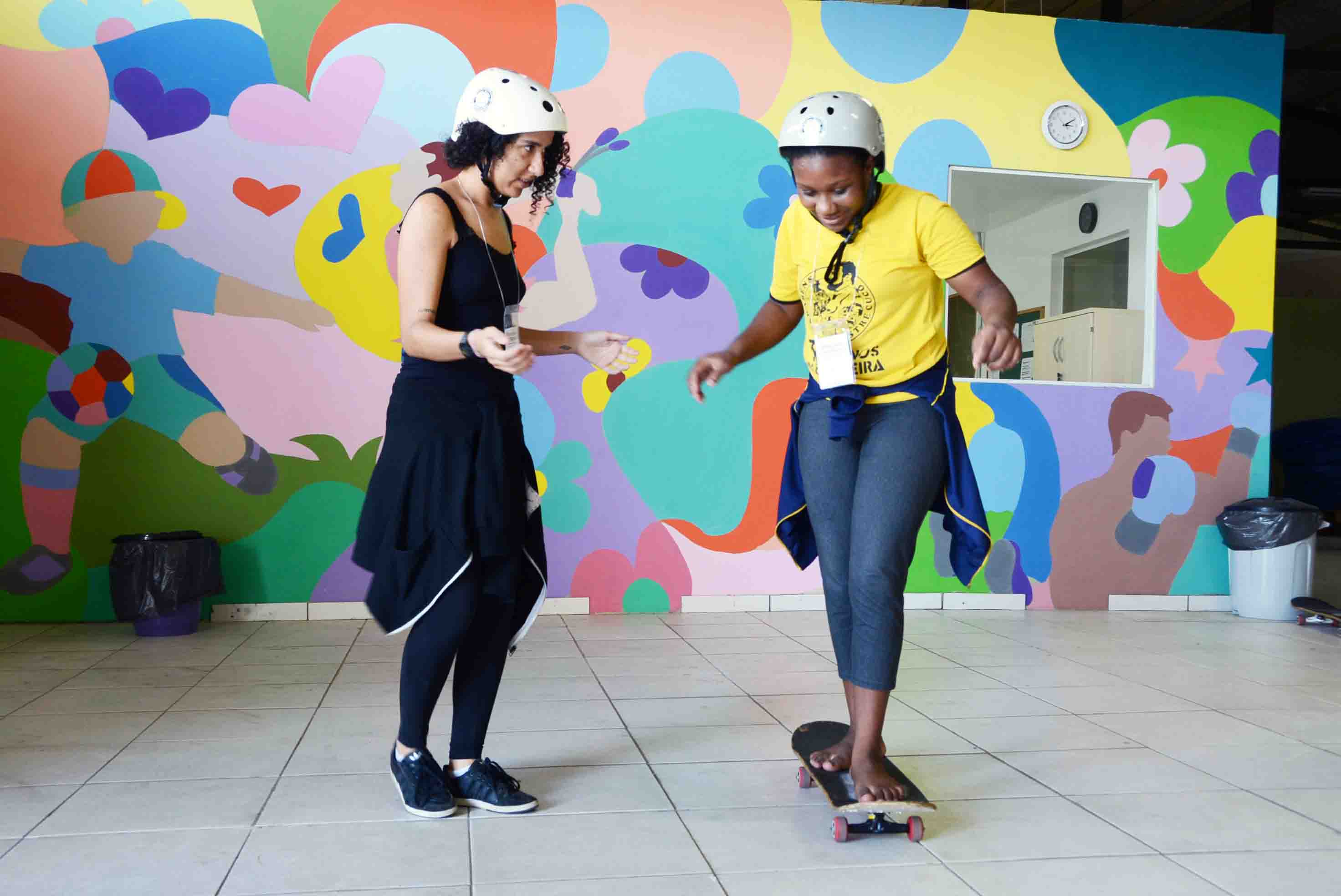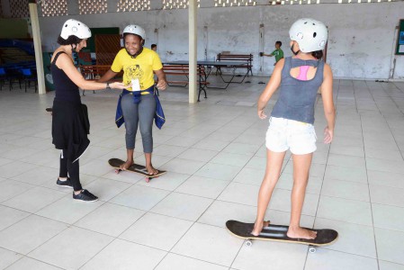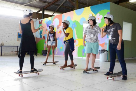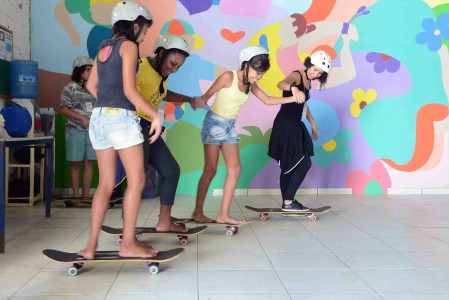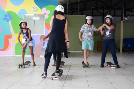 Meninas aprendem a andar de skate no Território Jovem João Romão