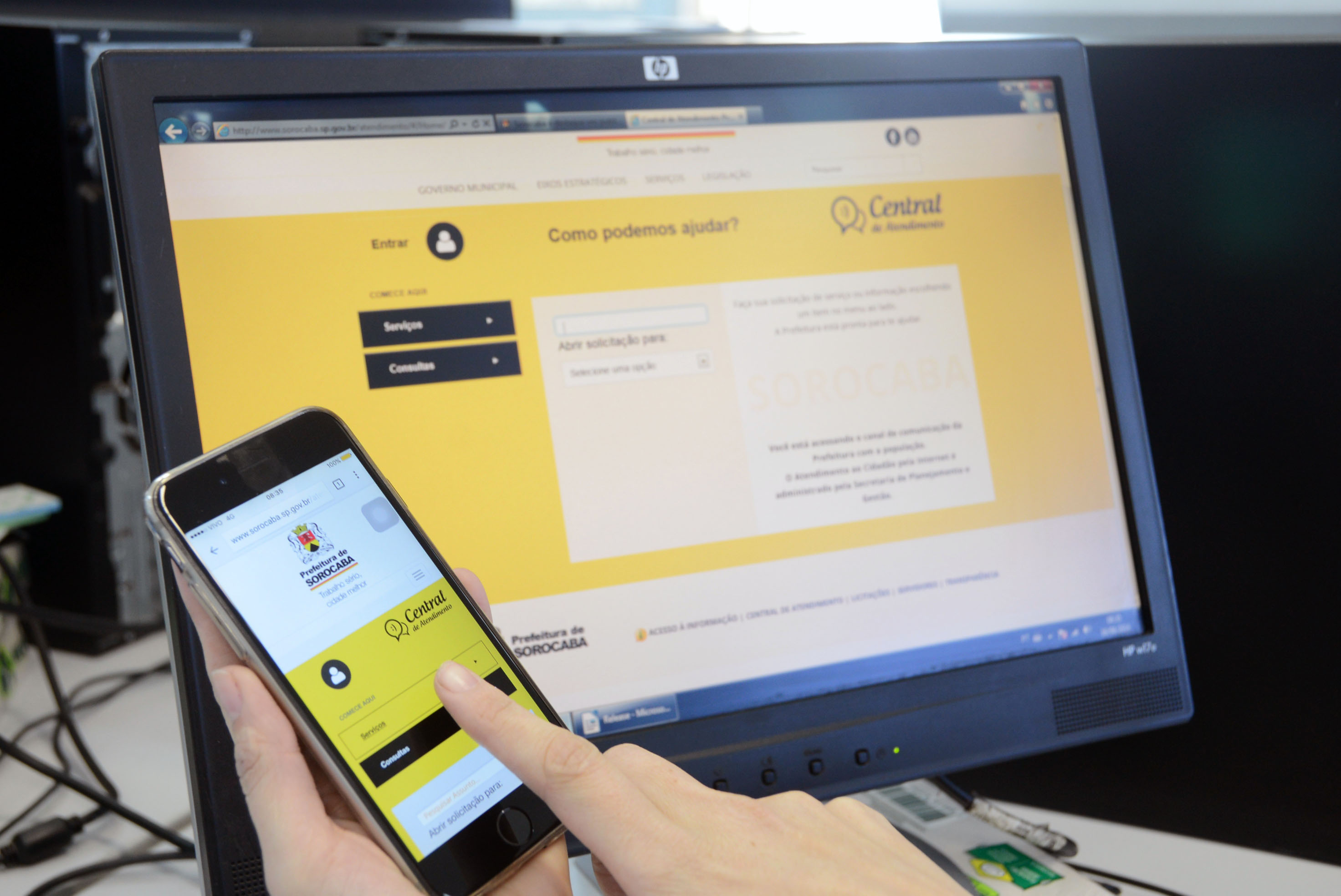 A Central de Atendimento pode ser acessada pelo link www.sorocaba.sp.gov.br/atendimento ; depois é só efetuar um cadastro. No caso de quem não possui internet em casa, é possível utilizar o sistema nas Casas do Cidadão, espalhadas pela cidade.