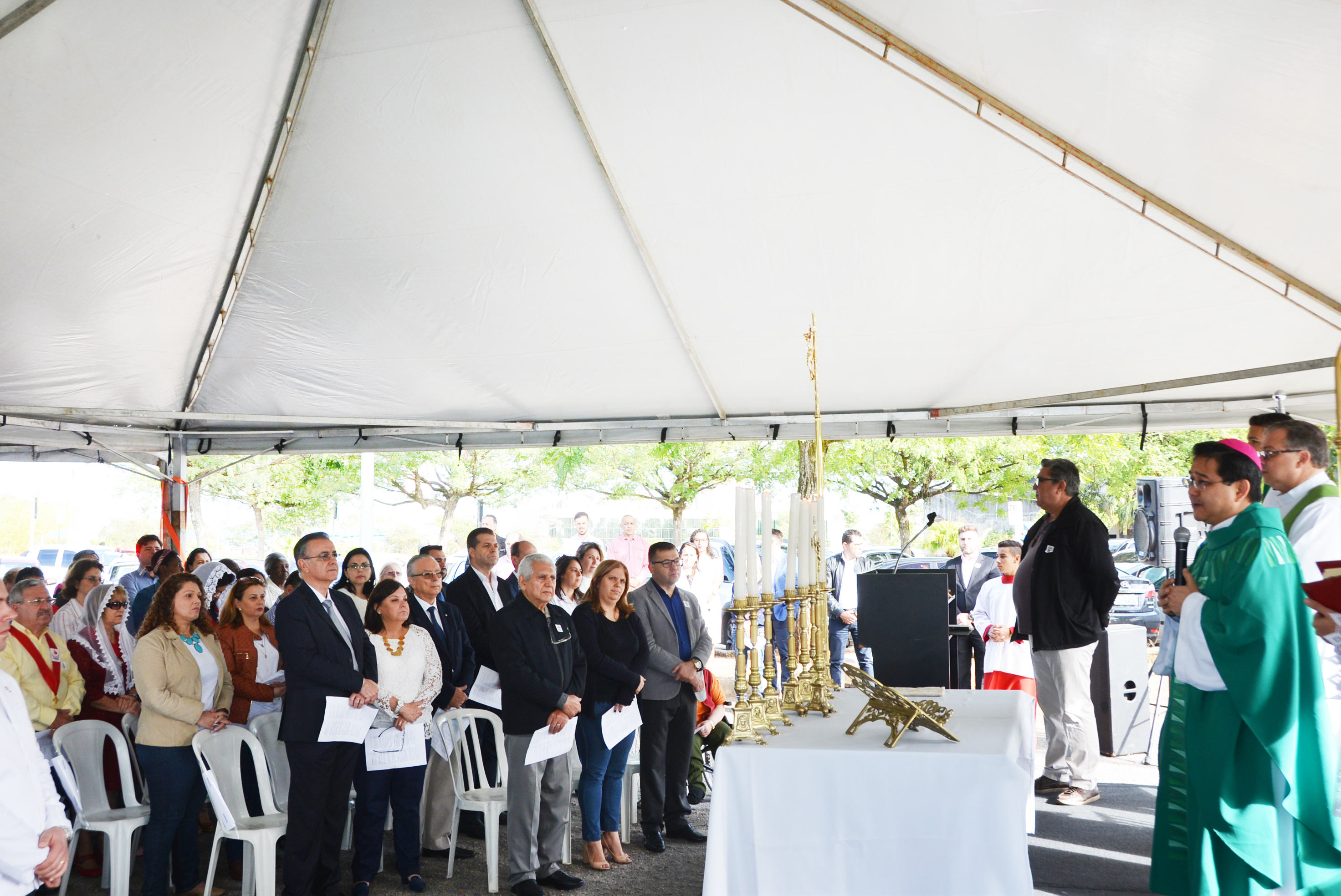 Com uma missa ministrada pelo arcebispo Dom Julio Akamine, a Prefeitura de Sorocaba celebrou na manhã desta quarta-feira (01), o dia de Todos os Santos. Realizada no estacionamento do Paço Municipal, a celebração contou com a presença de centenas de pessoas, entre moradores locais, funcionários públicos, além de secretários municipais, do prefeito, José Crespo e da primeira-dama, Lílian Crespo.