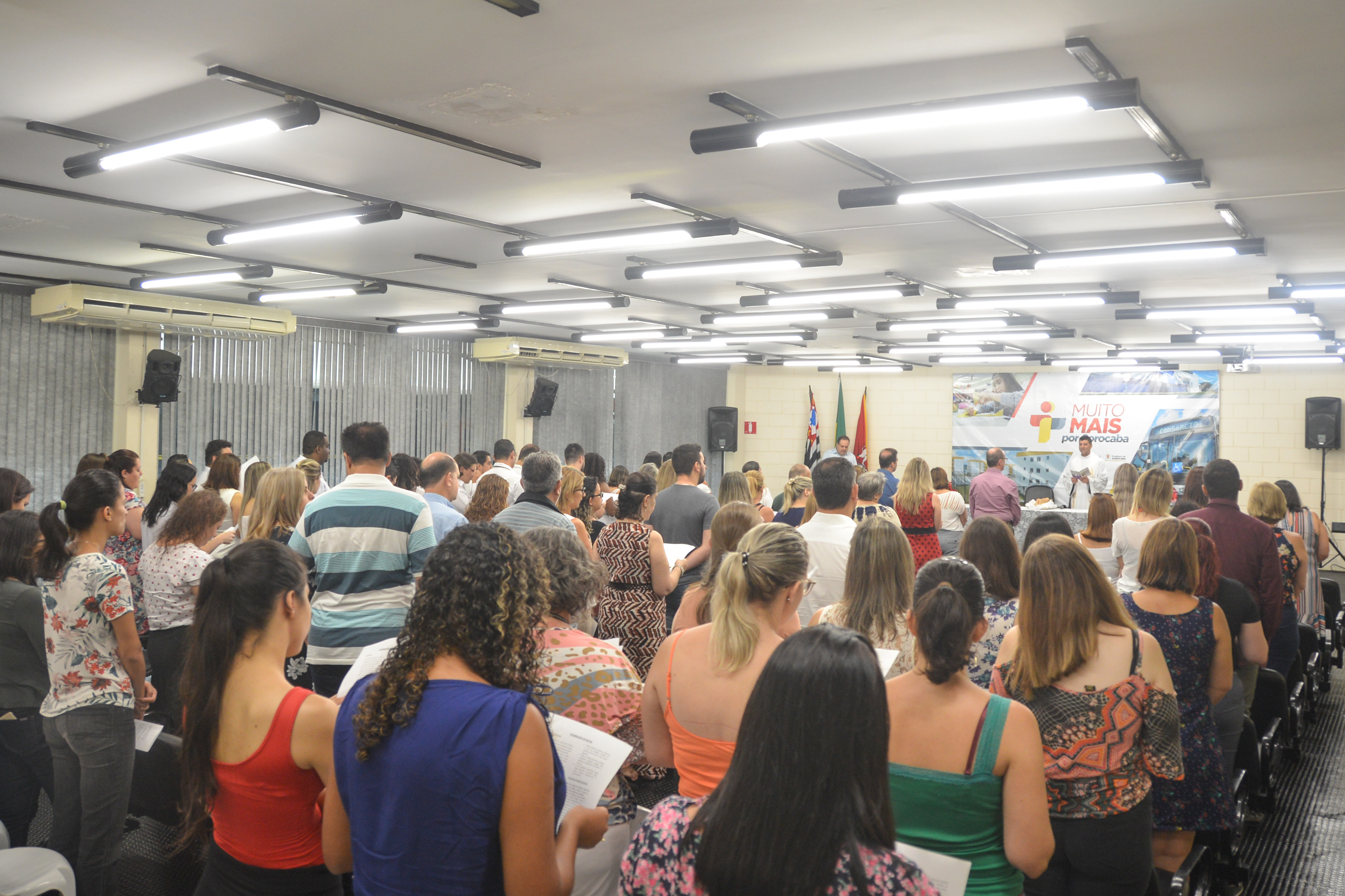 O Salão de Vidro da Prefeitura de Sorocaba abriu espaço na manhã desta quinta-feira (20), para a celebração de uma missa de Natal, organizada pelo Fundo Social de Solidariedade (FSS).