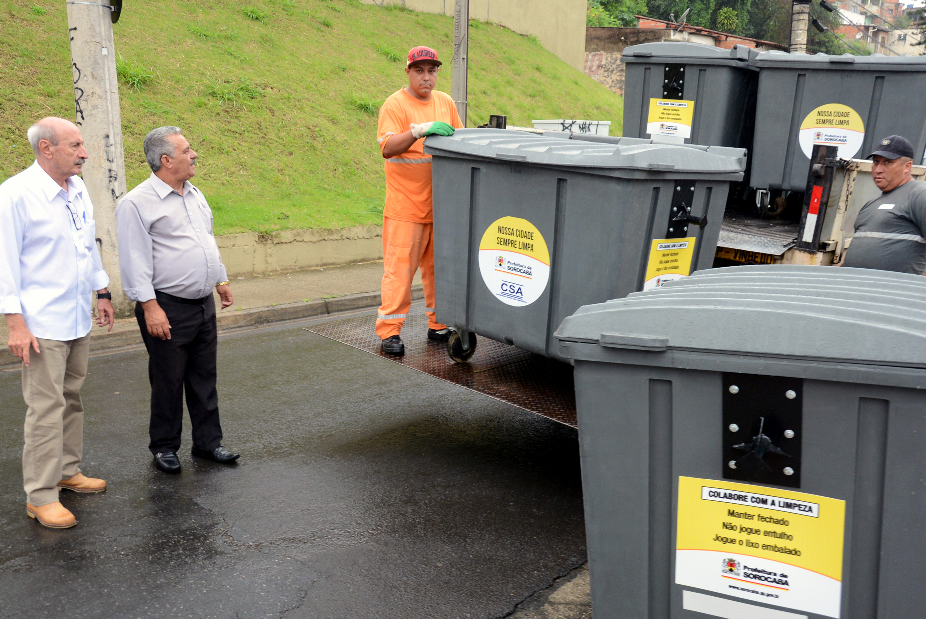 No trajeto para o trabalho, o caminhoneiro Nivaldo de Oliveira parou por um instante para observar o trabalho dos funcionários do Consórcio Sorocaba Ambiental (CSA), empresa que é responsável pela distribuição dos dispositivos. “É muito bom ter o contêiner de volta e esse é bem maior. A população tem que adotar e cuidar para que ninguém danifique ou roube”, disse Oliveira, morador do bairro há 35 anos. O Consórcio também é responsável pela coleta do lixo doméstico, varrição de vias, limpeza de banheiros públicos, além de higienização e manutenção dos contêineres.