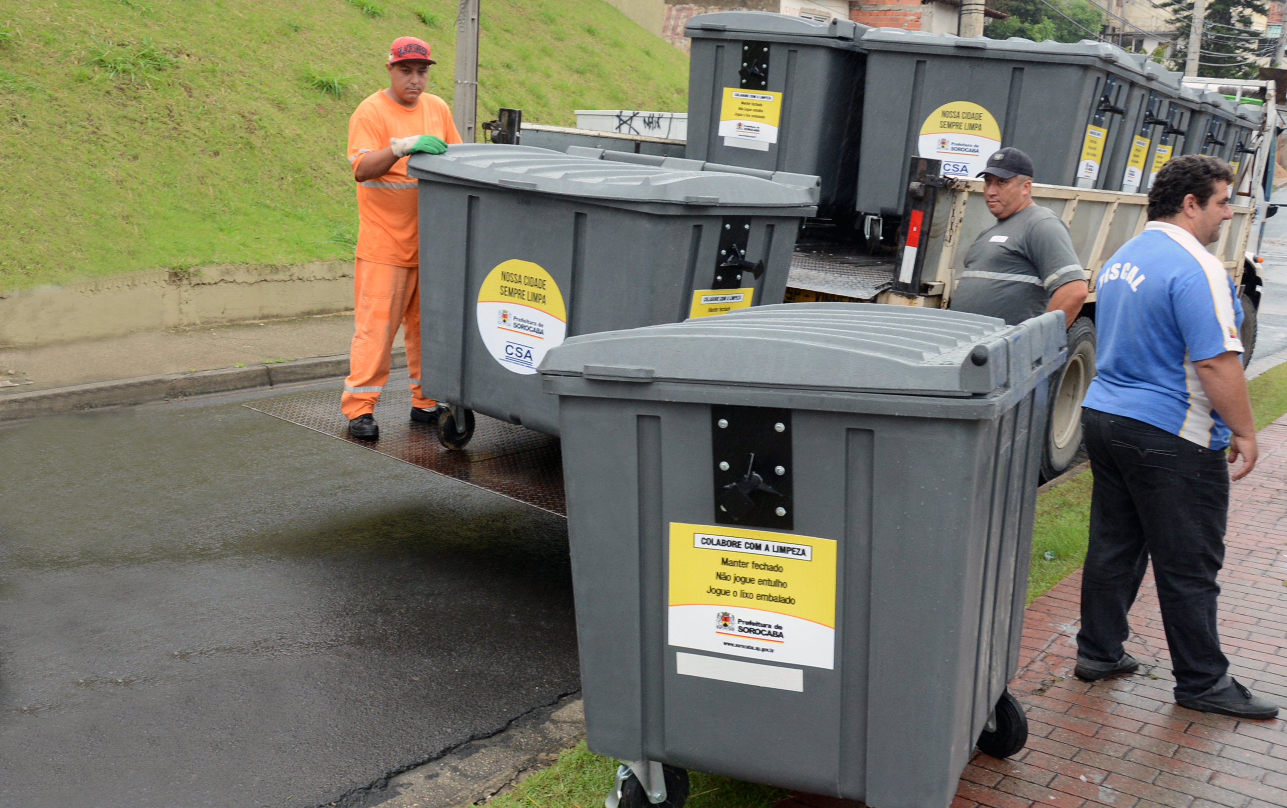 Mesmo debaixo de uma chuva fina, moradores da Vila Sabiá acompanharam atentamente o início da distribuição dos contêineres pelas ruas do bairro na manhã desta quarta-feira (25). A ação realizada pela Prefeitura de Sorocaba, por meio da Secretaria de Serviços Públicos (Serp), prevê a distribuição de aproximadamente 260 contêineres na região compreendida também pelas Vilas João Romão e Zacarias e ainda o Bairro dos Morros.