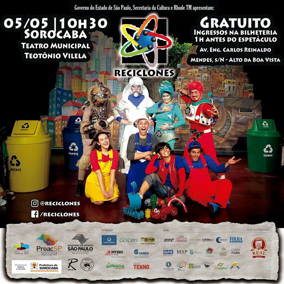 Ampliar as discussões sobre os cuidados com o meio ambiente é o principal objetivo do musical infantil “Reciclones: na conquista de um lixo consciente”, da Cia Paulista de Teatro Bilíngue, que será apresentado neste sábado (5), às 10h30, no Teatro Municipal “Teotônio Vilela” (TMTV). O evento conta com o apoio da Prefeitura de Sorocaba, por meio da Secretaria de Cultura e Turismo (Secultur), e terá entrada gratuita.