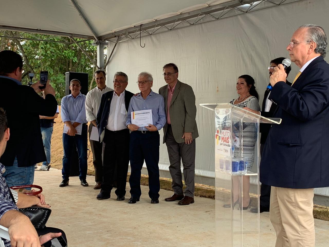Receberam o certificado de reconhecimento pelos serviços prestados à construção do viaduto os profissionais da MRV, Túlio Pereira Barbosa -diretor de Produção, engenheiro Giuliano Rossin – gestor de Obras e o engenheiro de Obras, Flávio Alves Del Bianco. Os representantes da construtora CSC, engenheiro Alex Vladimir Bordon Carletti – Sócio Diretor, engenheiro. José Carlos dos Santos – gerente de Contratos e Luiz Alberto de Mello -engenheiro de Obras. Da CCR, concessionária que administra a rodovia Raposo Tavares, Sérgio Ribeiro – diretor Institucional e a engenheira Cláudia Mantero. Os empresários Paulo Walter Leme dos Santos, Alcides Zanchet, Antônio Soriano, Geraldo Lopes de Carvalho e Adevilson Prates (representando a Leroy Merlim). Os engenheiros Clebson Ribeiro e Kathine Martins de Oliveira da Secretaria de Conservação, Serviços Públicos e Obras e o engenheiro da Secretaria de Mobilidade Acessibilidade, Adilson Tagliaferro Junior.