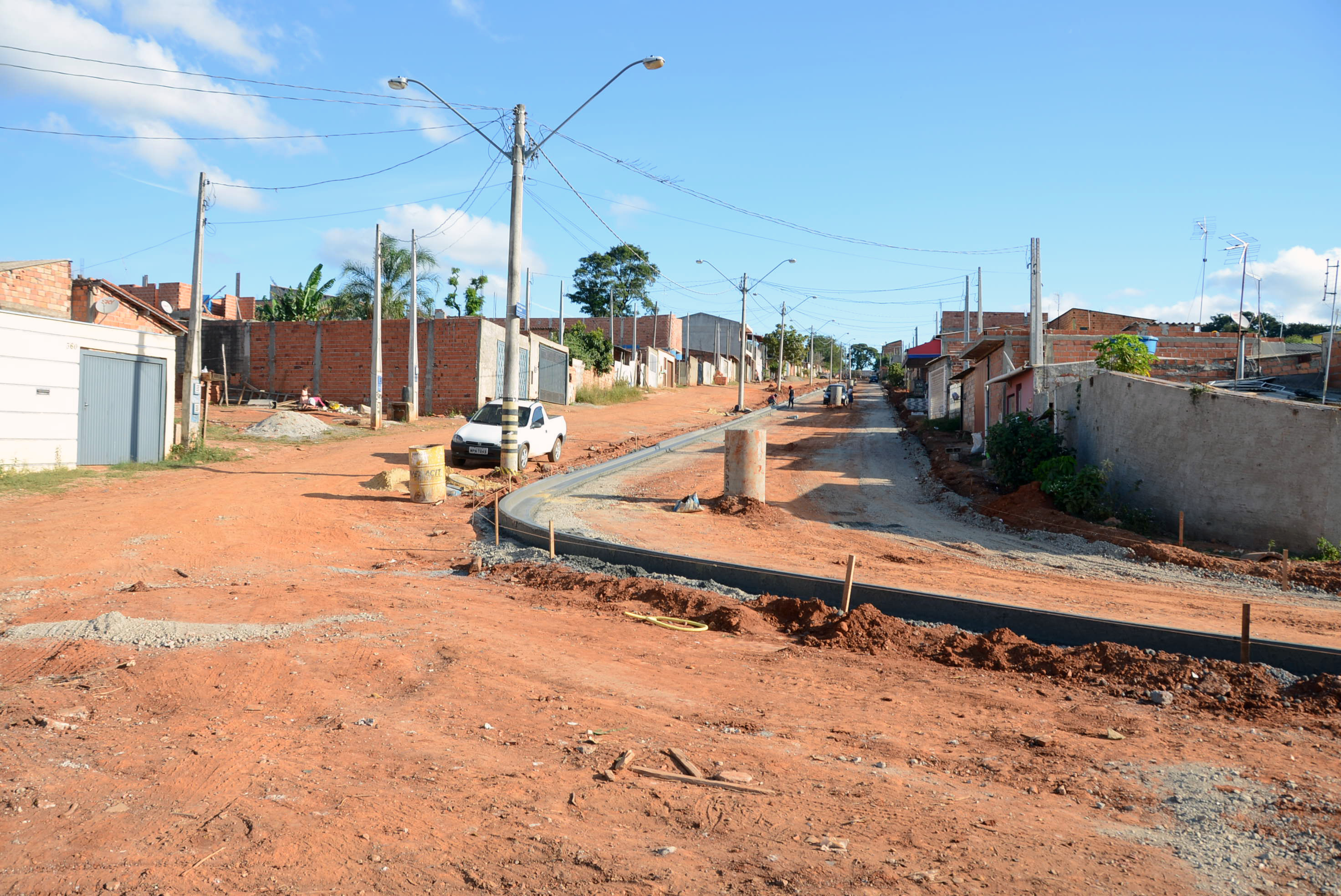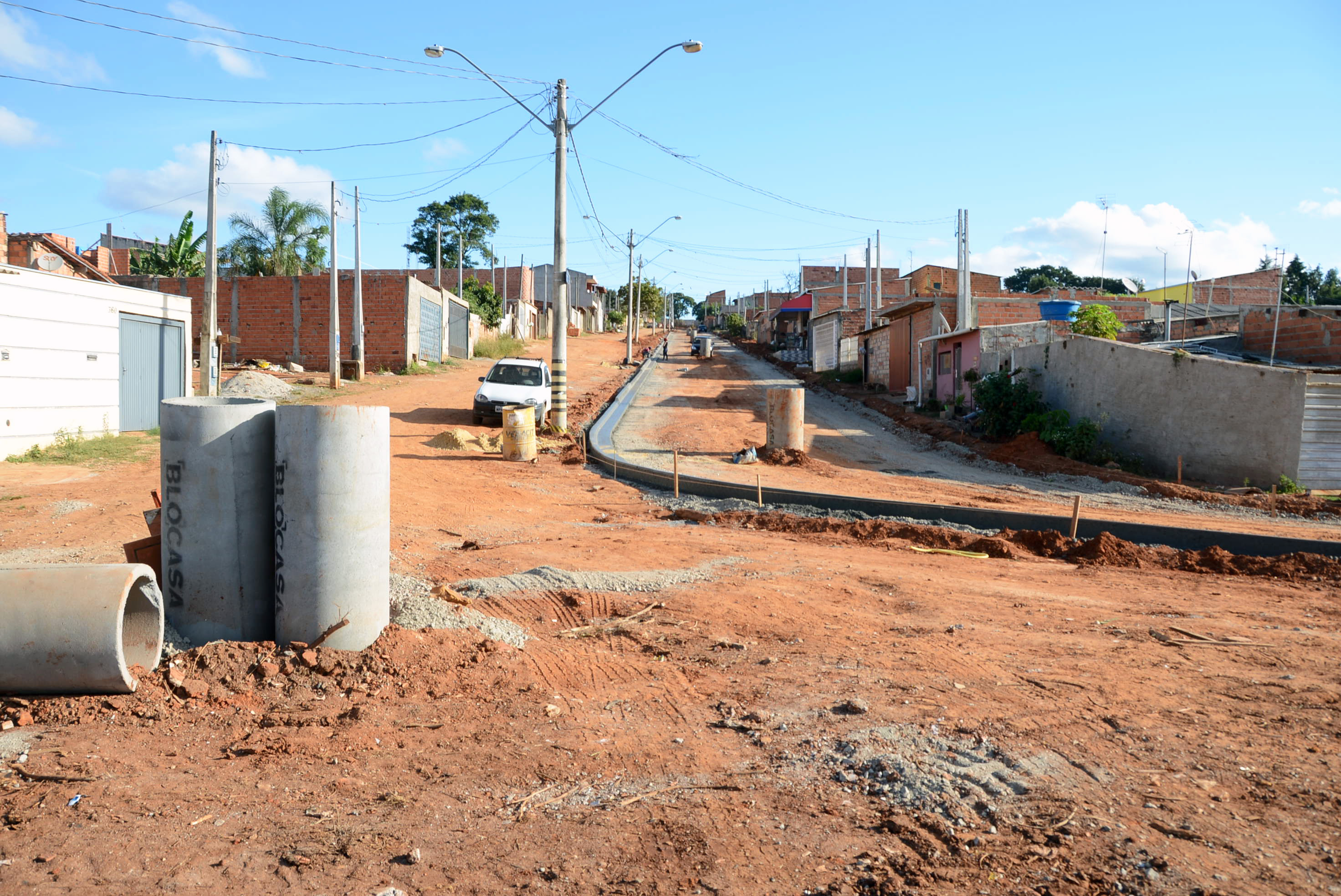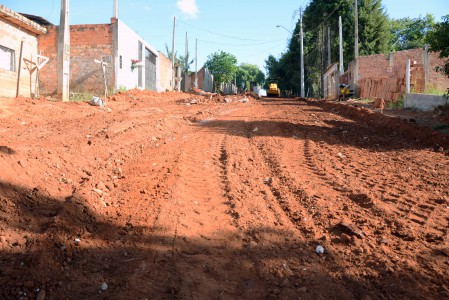 A empresa contratada está terminando o serviço de drenagem na Rua Manoel Dom Romero Filho. Nesta sexta-feira (13), a via deve começar a receber terraplenagem para que, na sequência, sejam colocadas guias e sarjetas. Na Rua Antonio Bravo Plaça esse serviço foi concluído. Após o término desse procedimento, as quatro ruas receberão a brita (bica corrida), o binder (camada de ligação) e, depois, o asfalto.