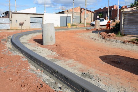 Novos trechos das ruas no Vitória Ville recebem guias e sarjetas