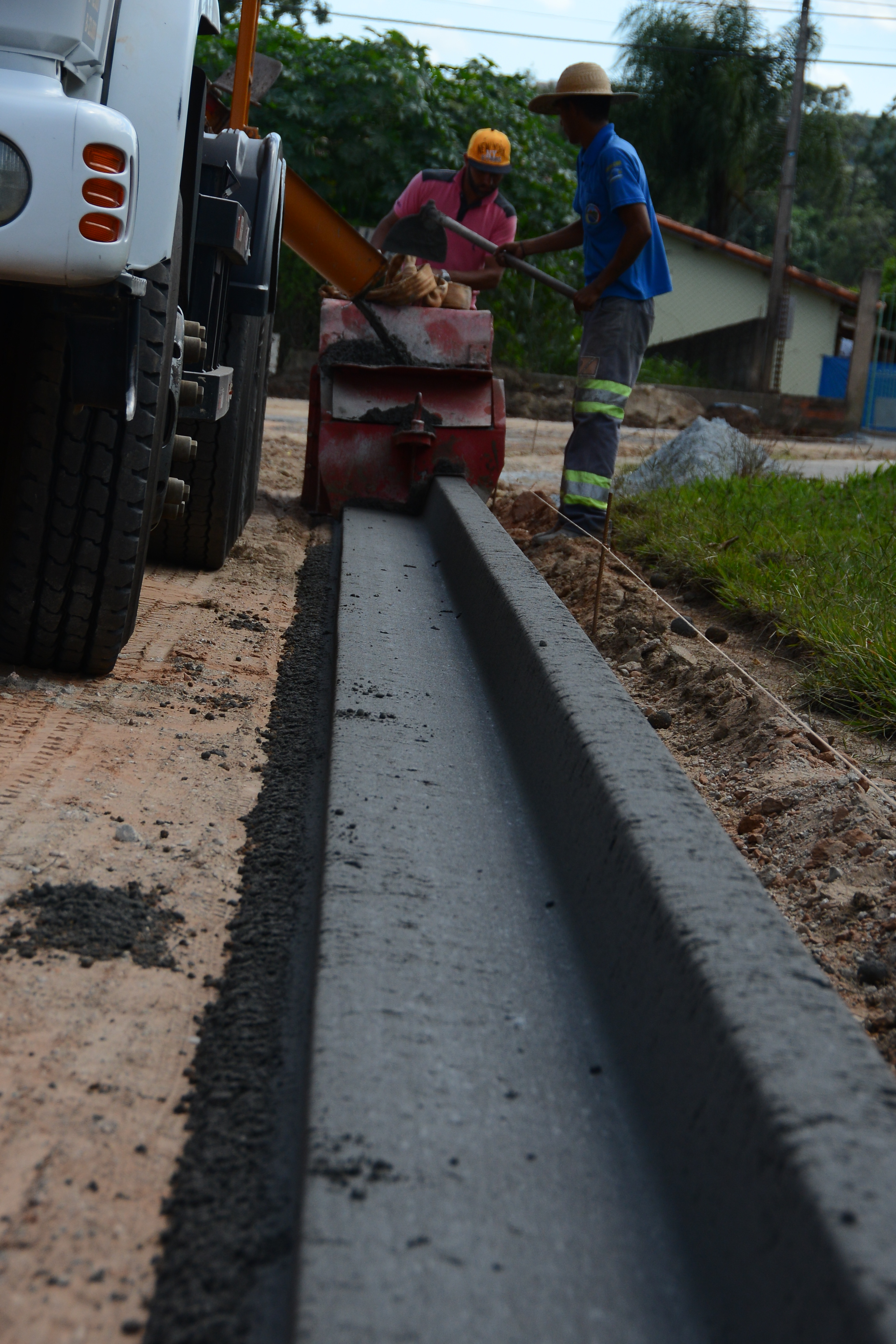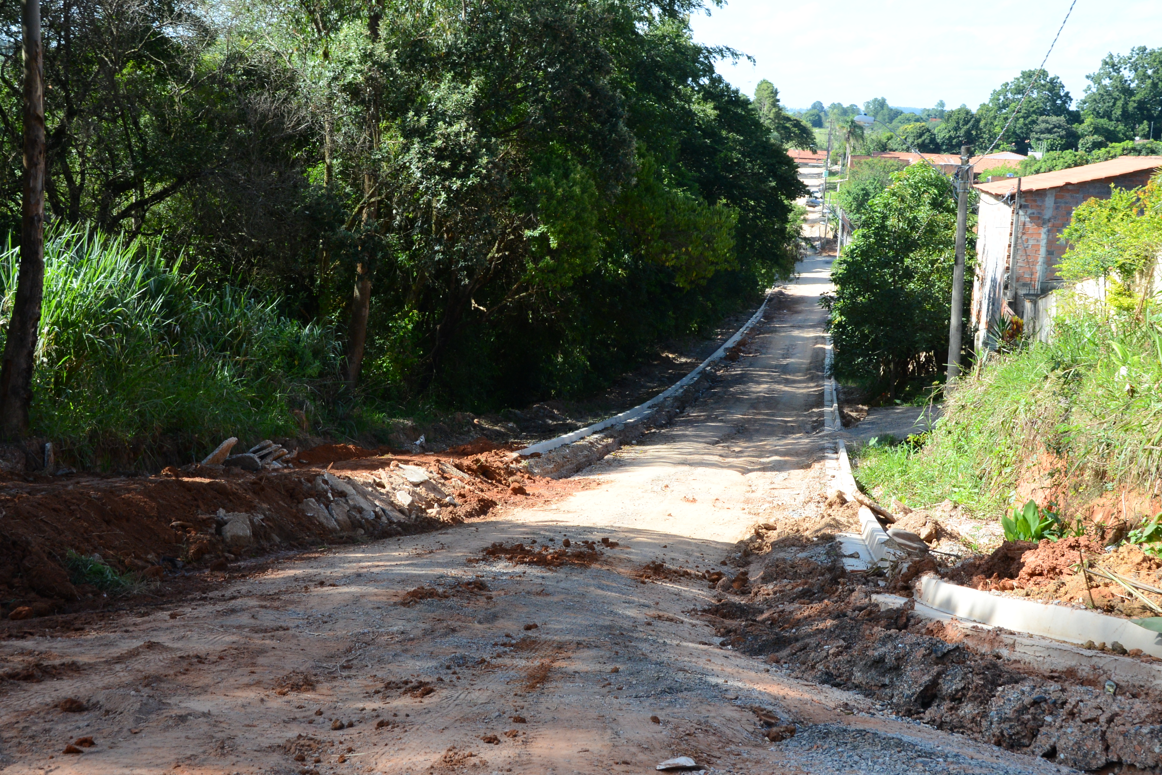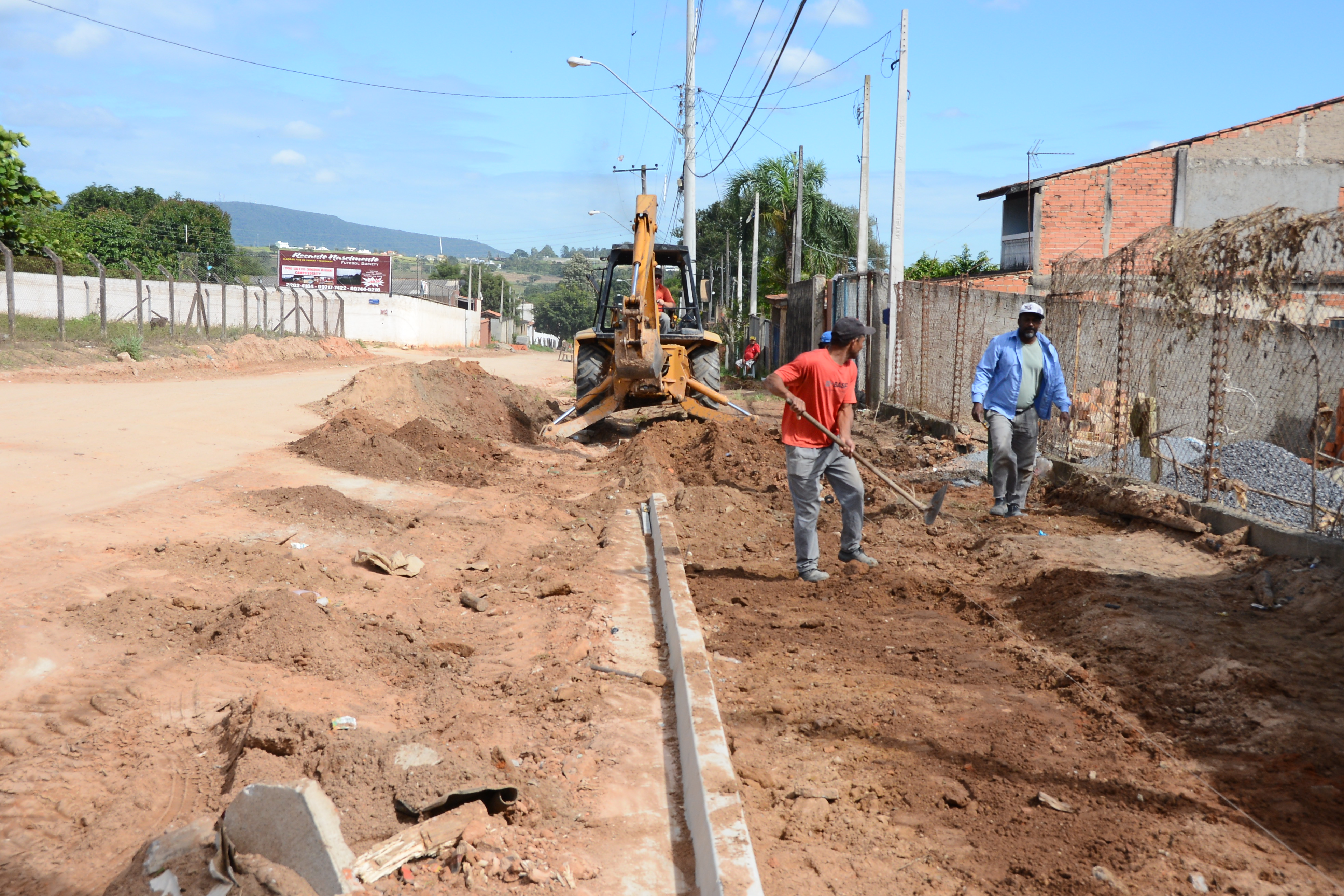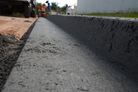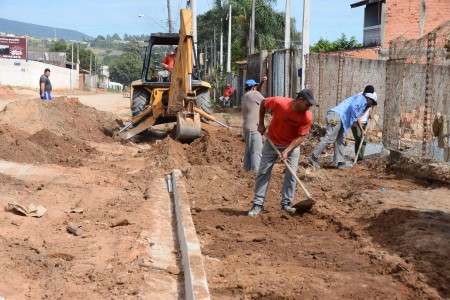 O trabalho segue em outras ruas com a preparação de solo e aplicação de brita, além de concretagem de guias e calçadas.