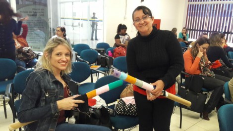 A responsável pela oficina de sussurrador de poesias foi a professora Soraia Aparecida Aprimo Ferreira Uno, que atua no CEI-07. “O sussurrador é um instrumento feito com tubo de papelão e serve para levar poesia às pessoas. Foi um trabalho que ocorreu na França, no qual os artistas ofertavam poesias nas ruas”, conta a professora.