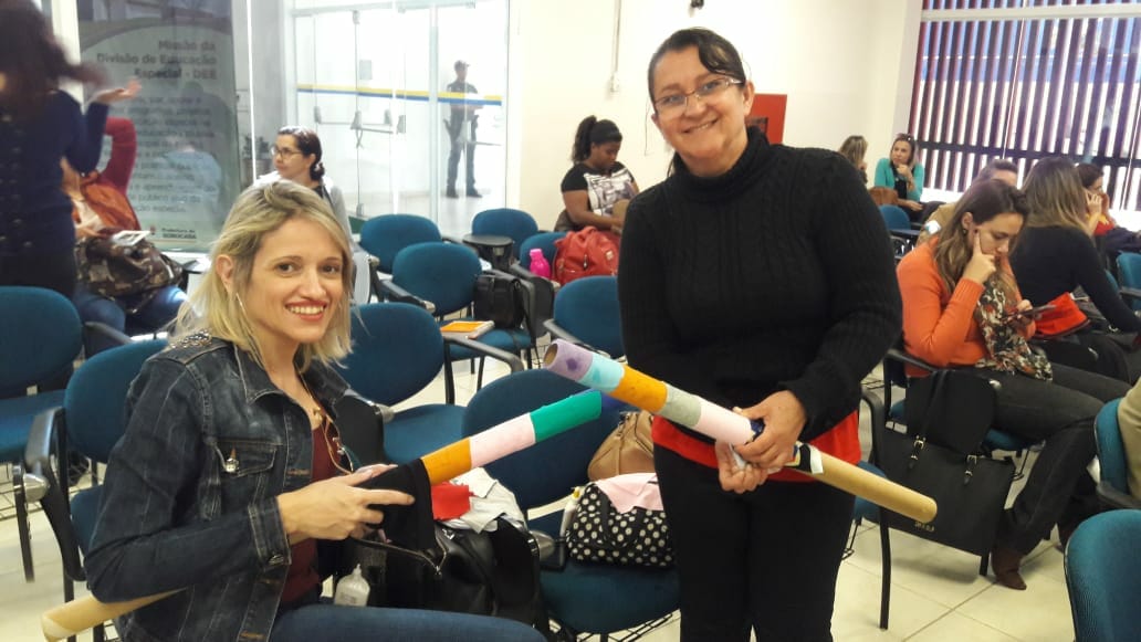 Na oficina, cada professor confeccionou o seu instrumento e testou os vários sons e vibração de acordo com o tamanho do tubo. “A proposta é recitar poesias de Drummond, Cecília Meirelles, entre outros, no ouvido das crianças, sussurrando através do tubo”, explicou Soraia.