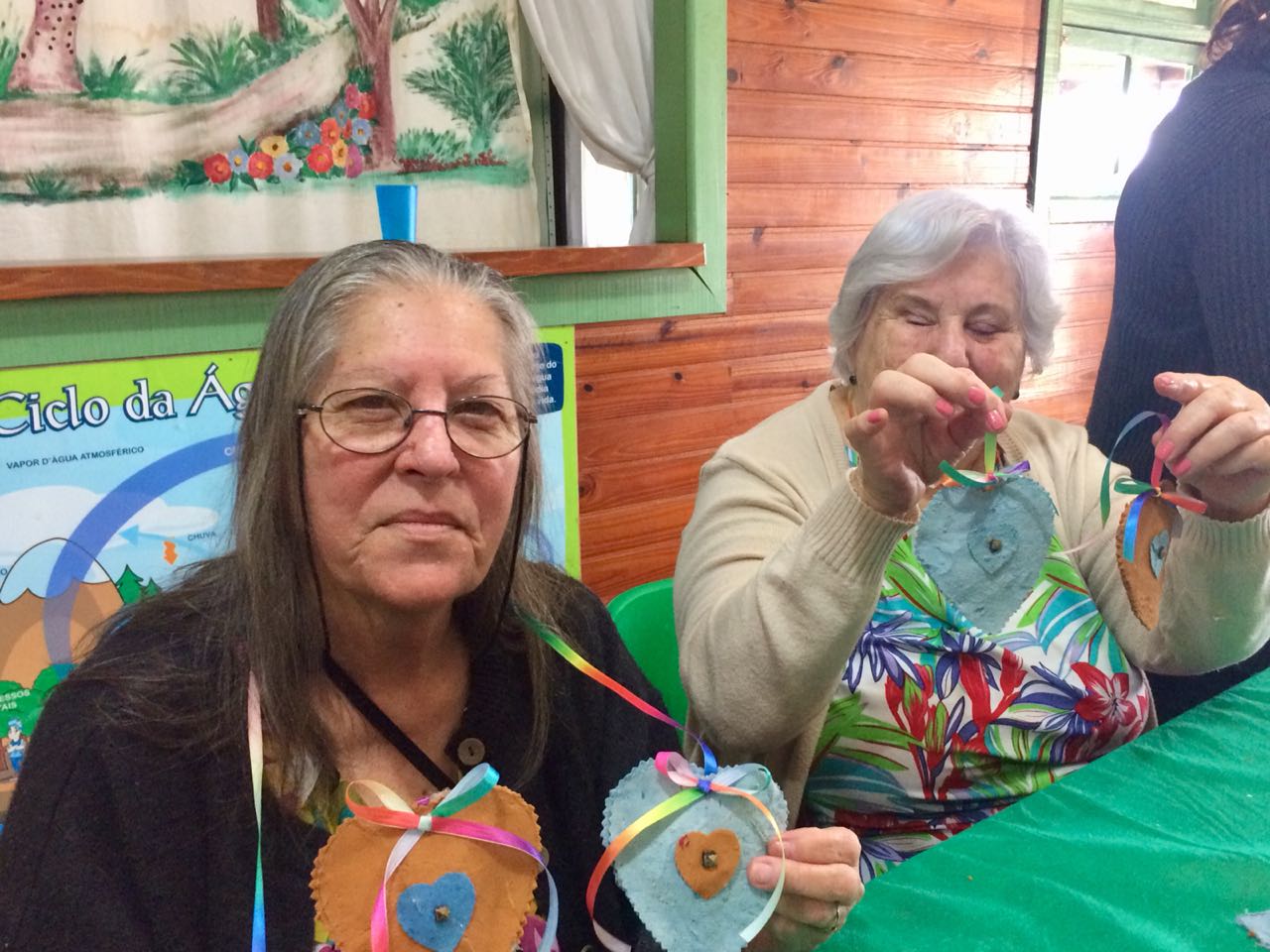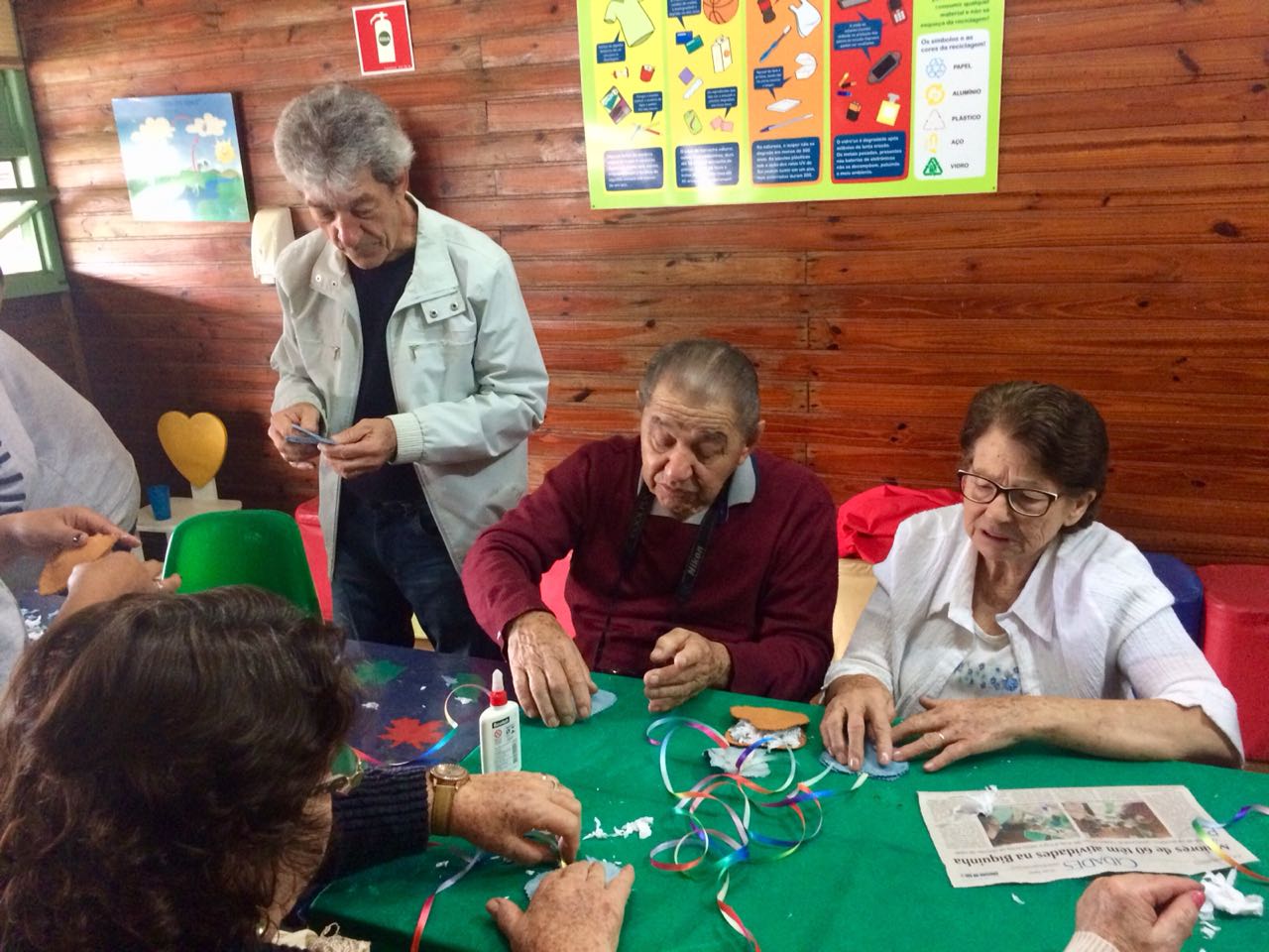 Oficina ensinou idosos a fazerem um móbile utilizando papel reciclado